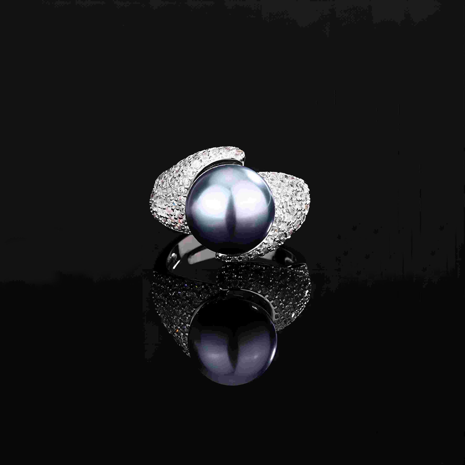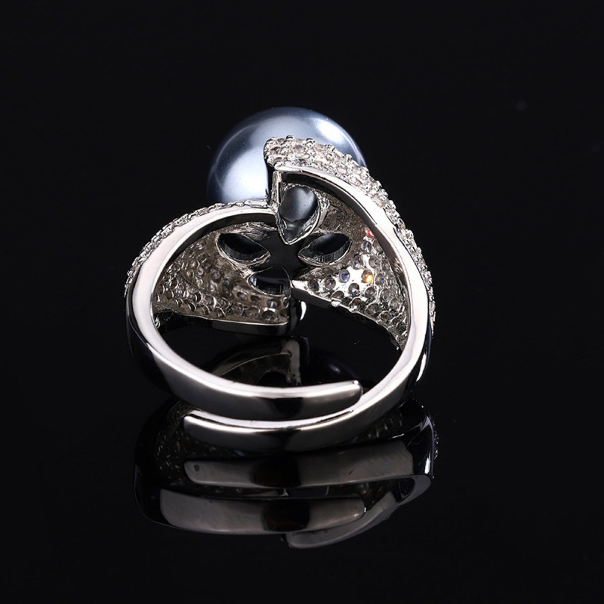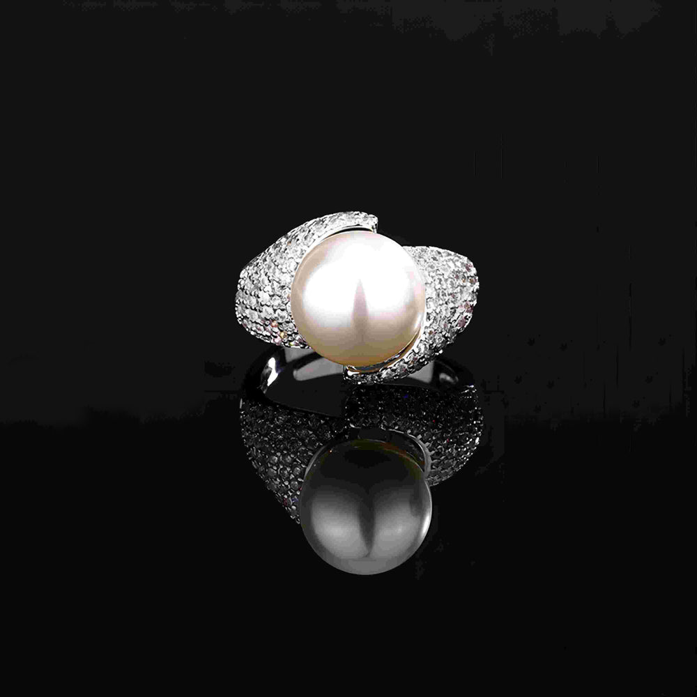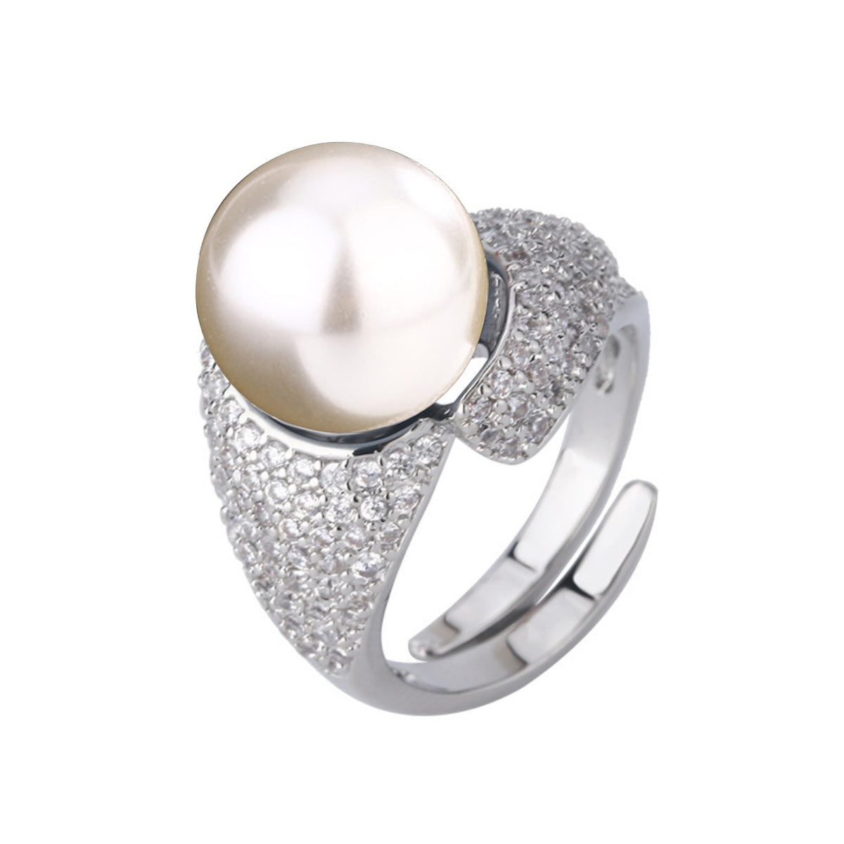 Urqanyu Copper plated white gold inlaid pearls elegant simple cubic zirconia ring 14mm