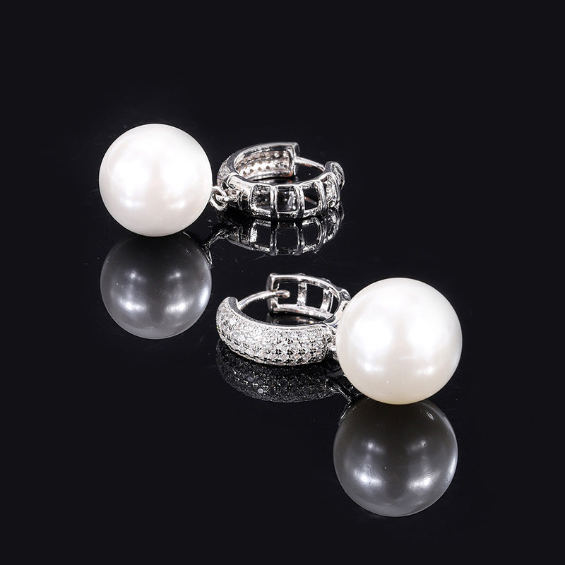 Urqanyu S925 silver inlaid mother-of-pearl vintage cubic zirconia pendant earrings 12mm