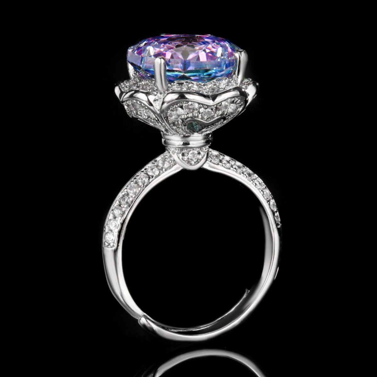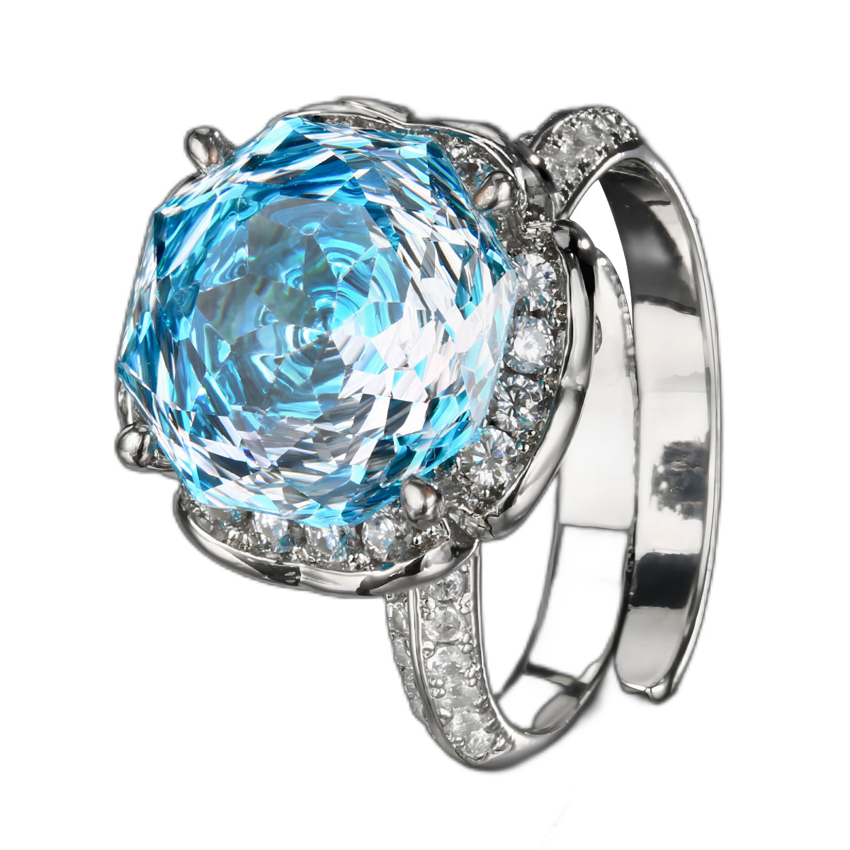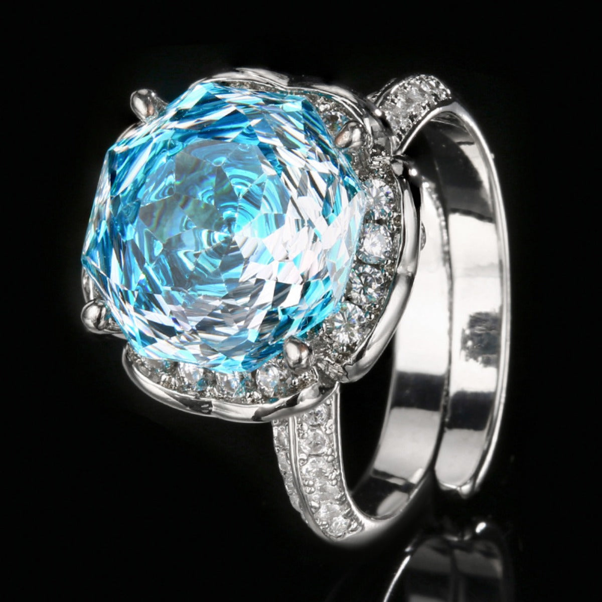 Urqanyu Copper Gold-plated Simulated Rose Cut Sea Blue Bud Textured Cubic Zirconia Ring 12mm