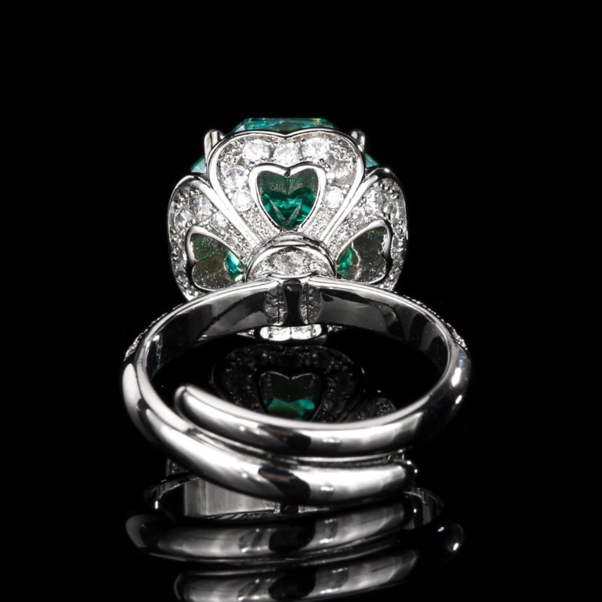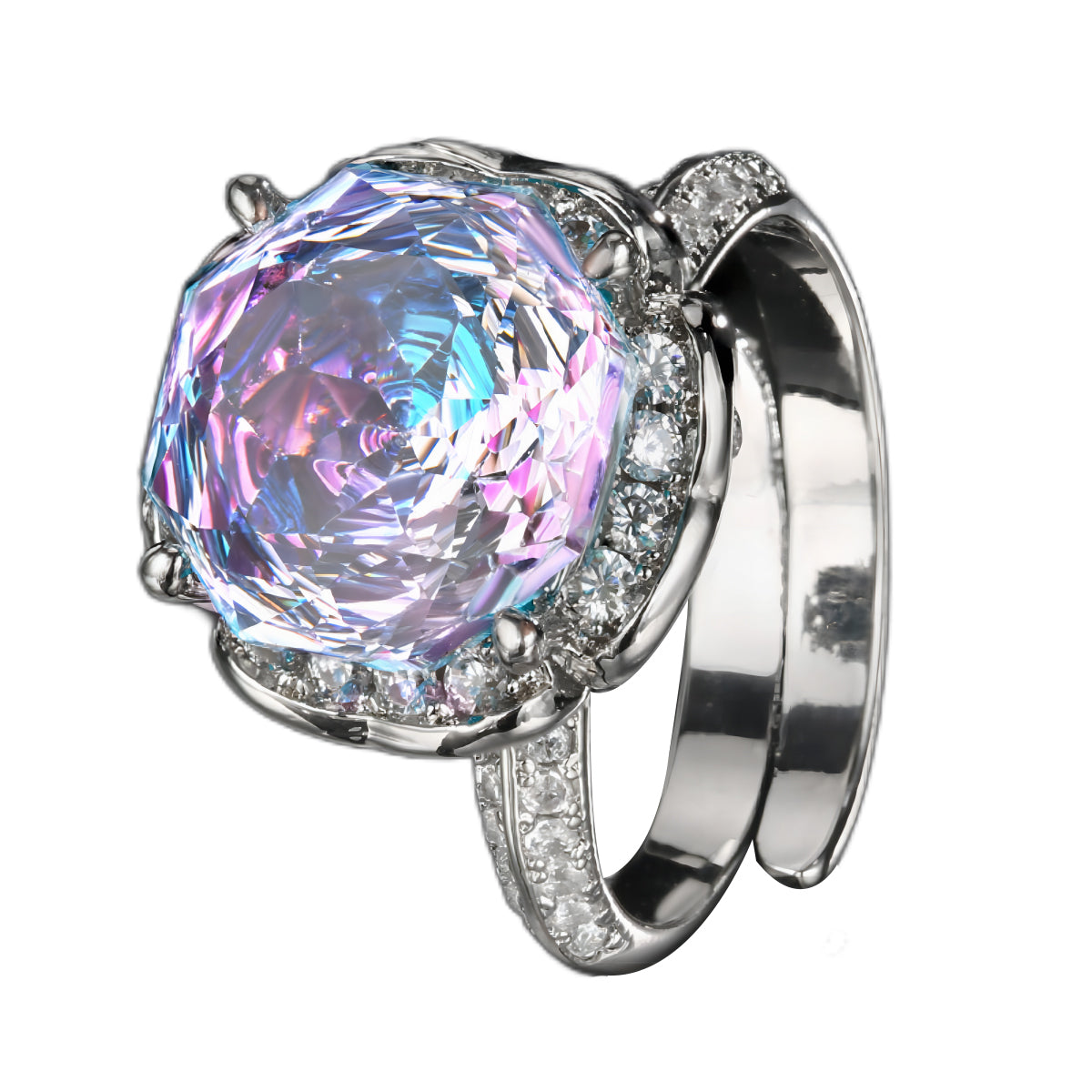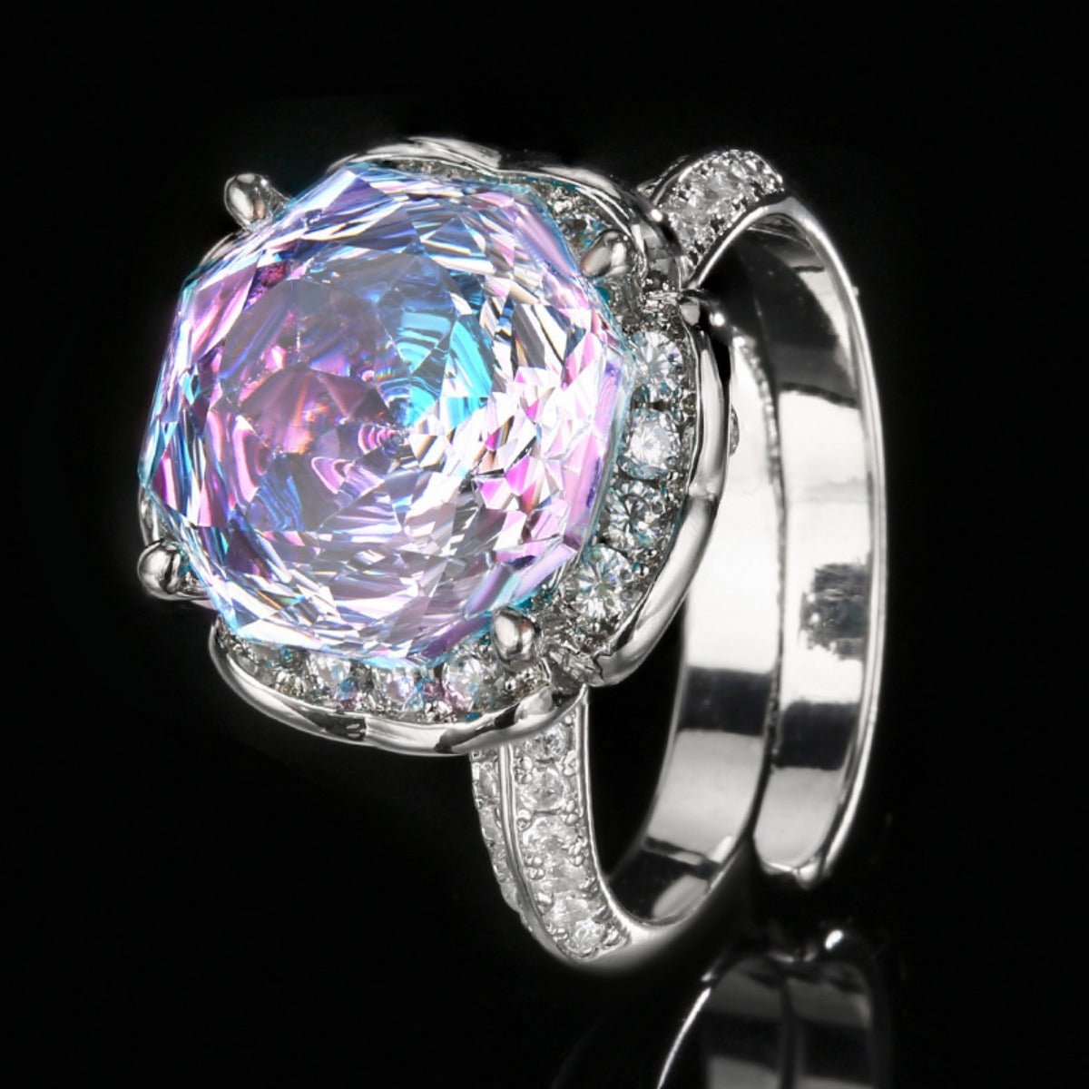 Urqanyu Copper Gold-plated Simulated Rose Cut Sea Blue Bud Textured Cubic Zirconia Ring 12mm