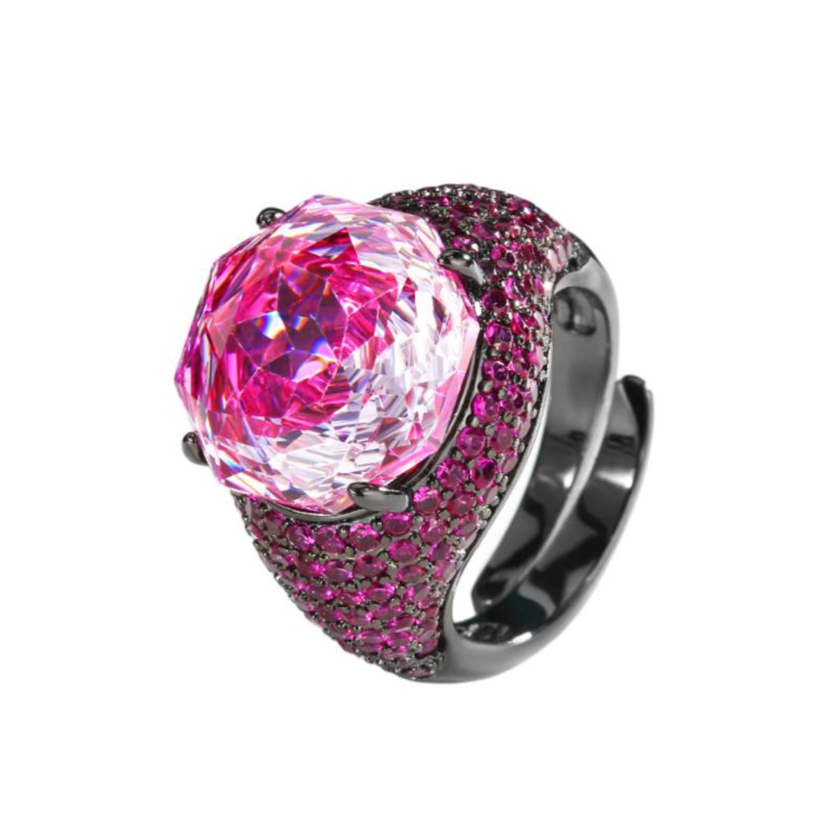 Urqanyu copper-based gold-plated simulated rose-cut gradient black gold personalized cubic zirconia ring