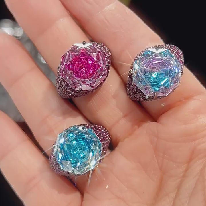 Stone Color:Blue-Fuchsia, Aquamarine Blue, and Rose red