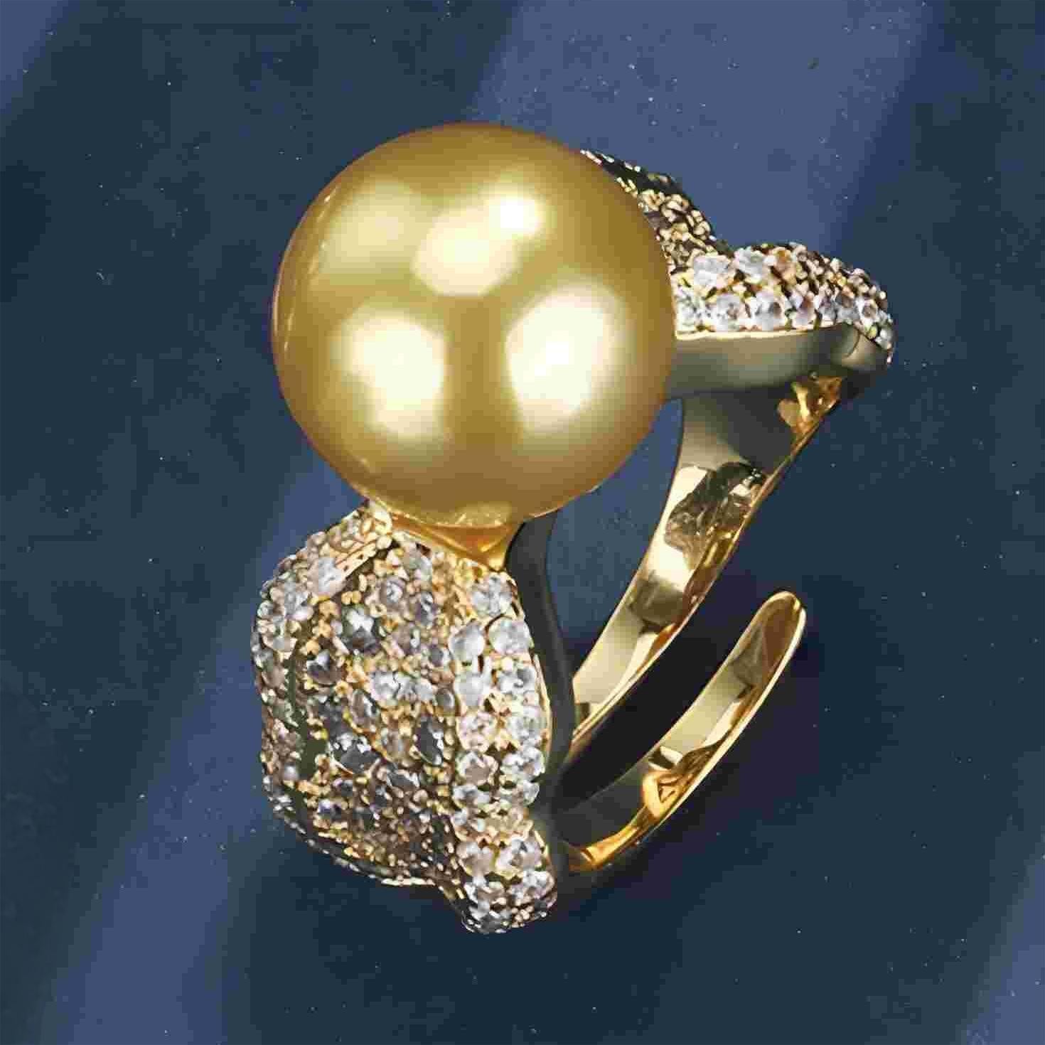Urqanyu copper-plated pearl temperament fashion cubic zirconia gold ring 10mm