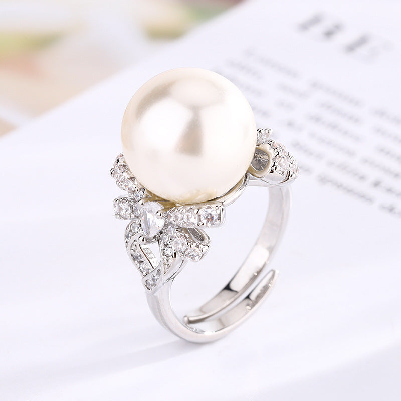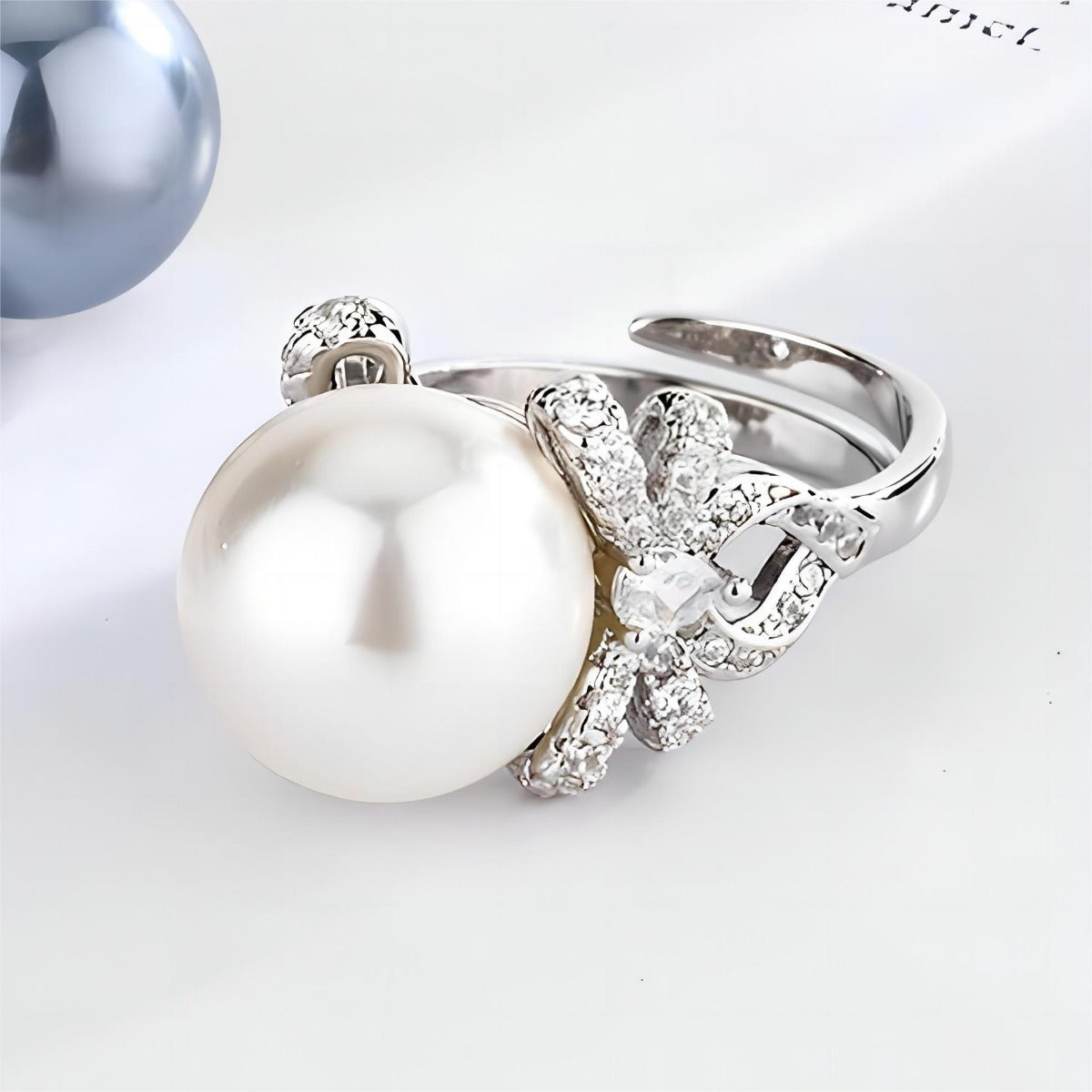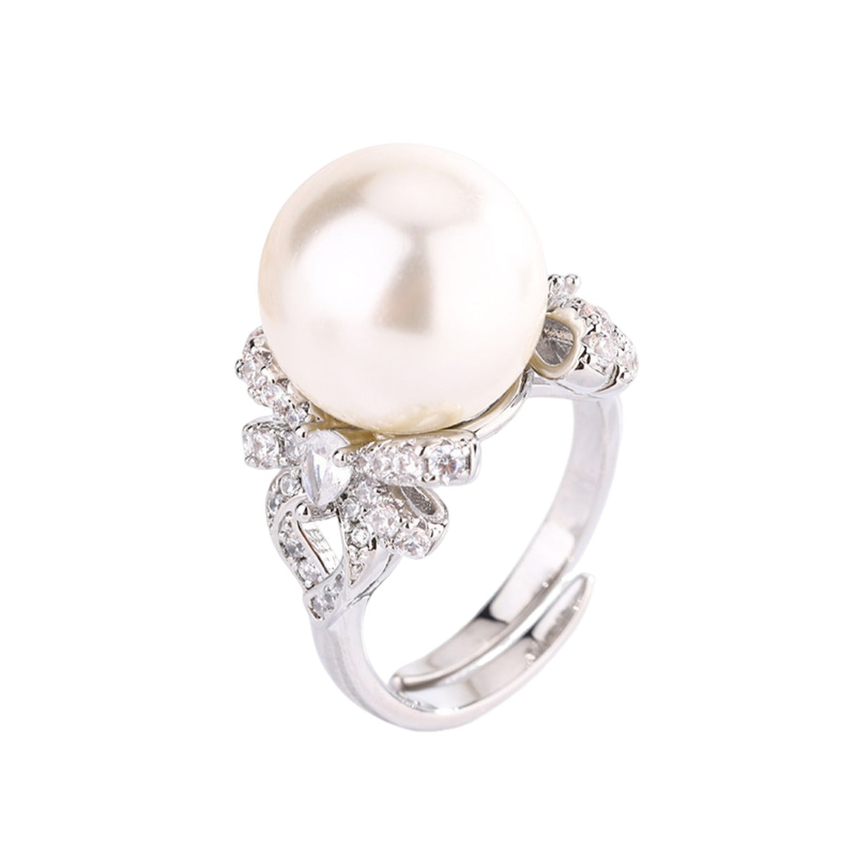 Urqanyu Gold Plated Copper Inlaid Mother-of-Pearl Butterfly Cubic Zirconia Ring 14mm