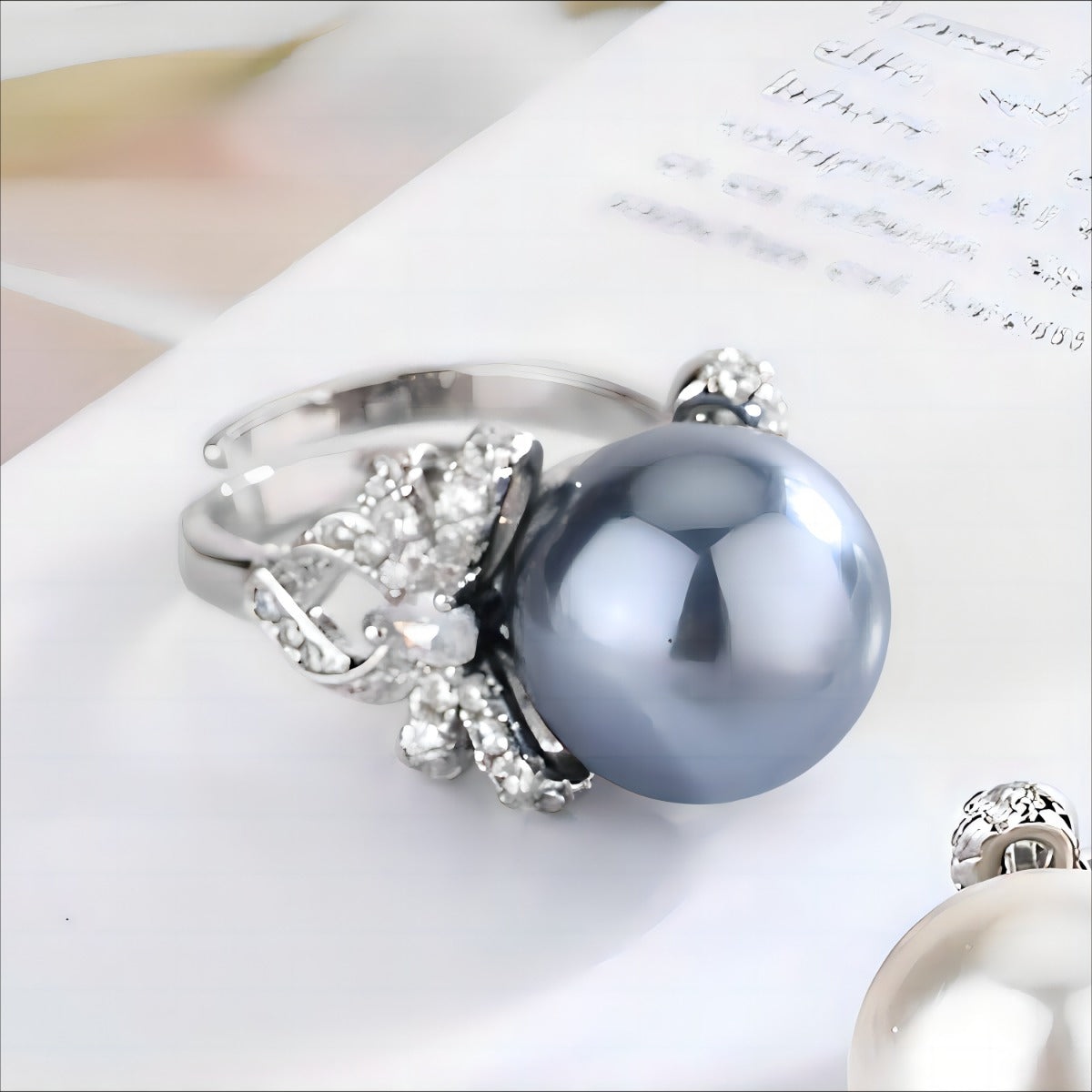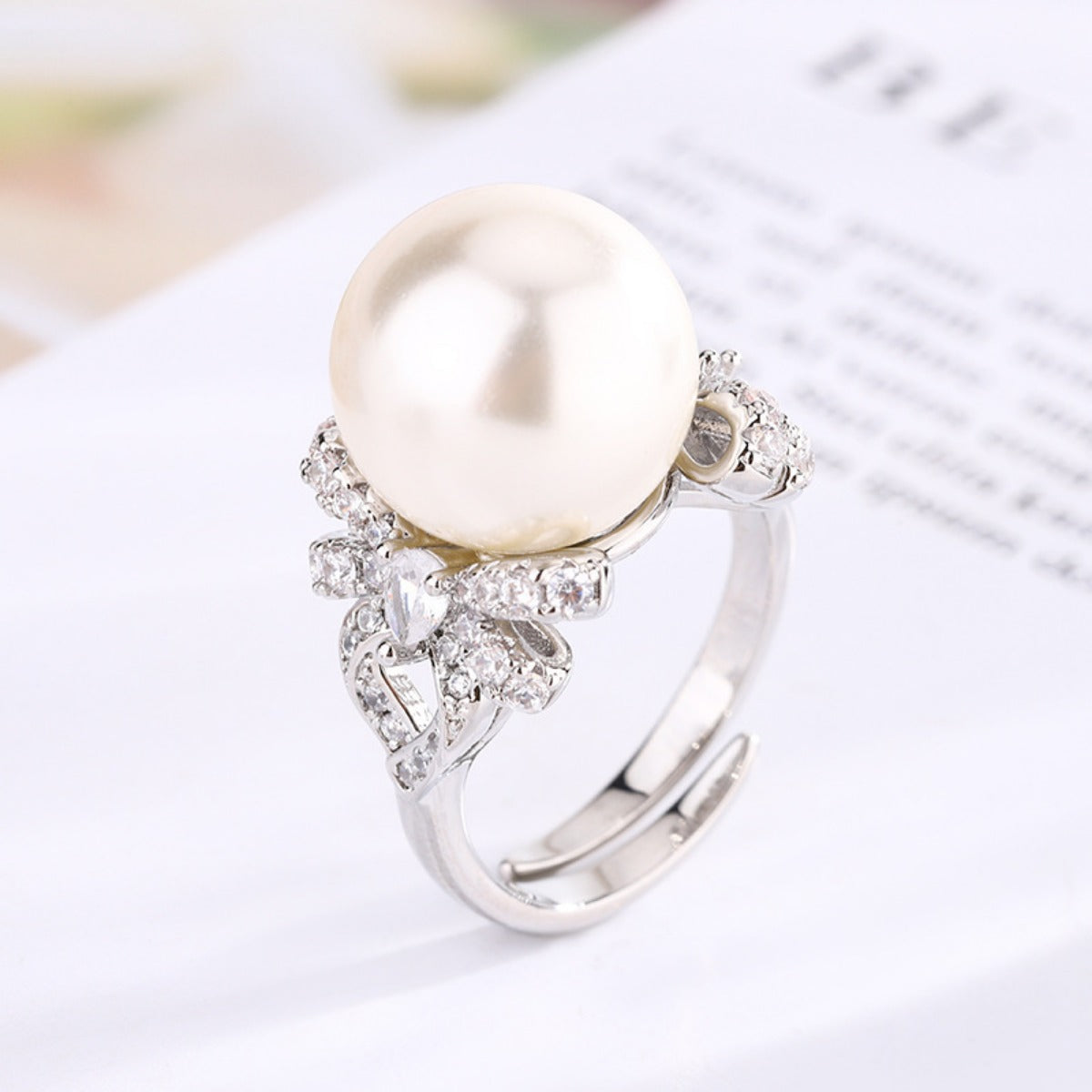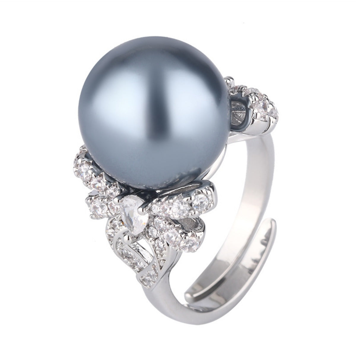 Urqanyu Gold Plated Copper Inlaid Mother-of-Pearl Butterfly Cubic Zirconia Ring 14mm
