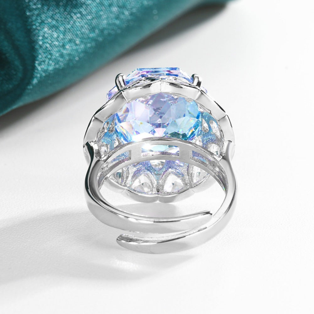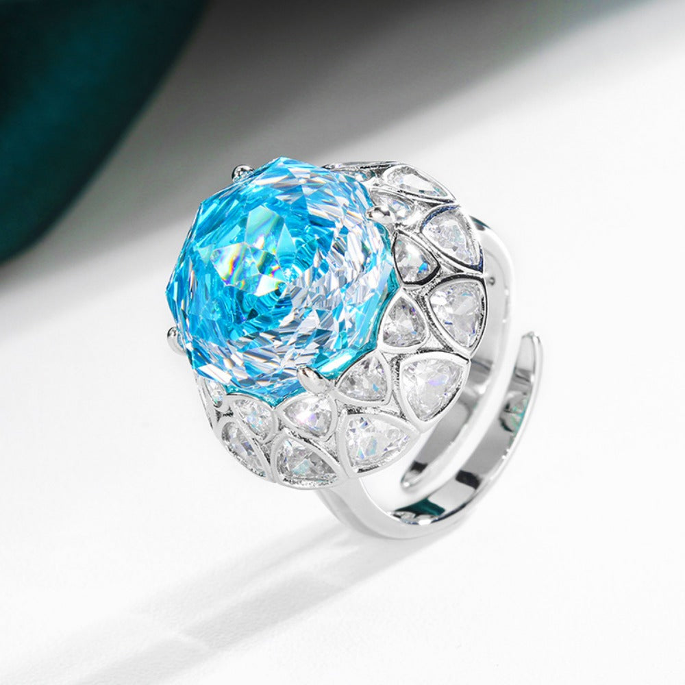 Urqanyu copper base gold-plated rose cut sea blue vintage cubic zirconia ring