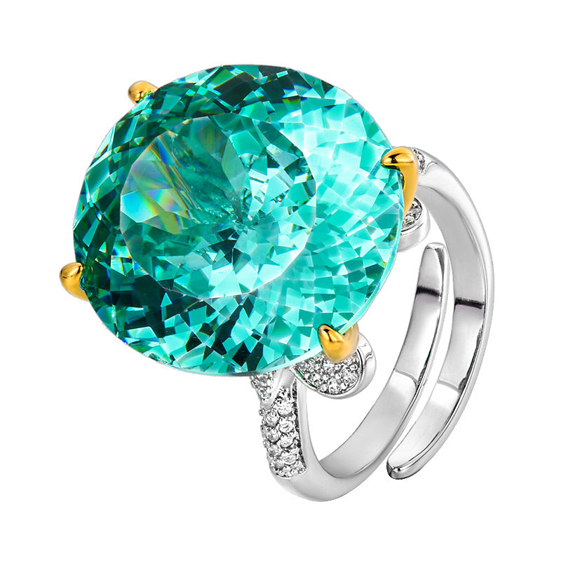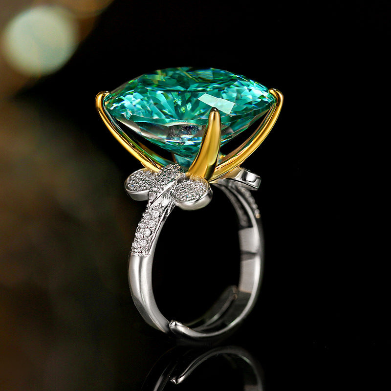 Urqanyu copper-based gold-plated simulated Para green temperament retro square zirconia ring