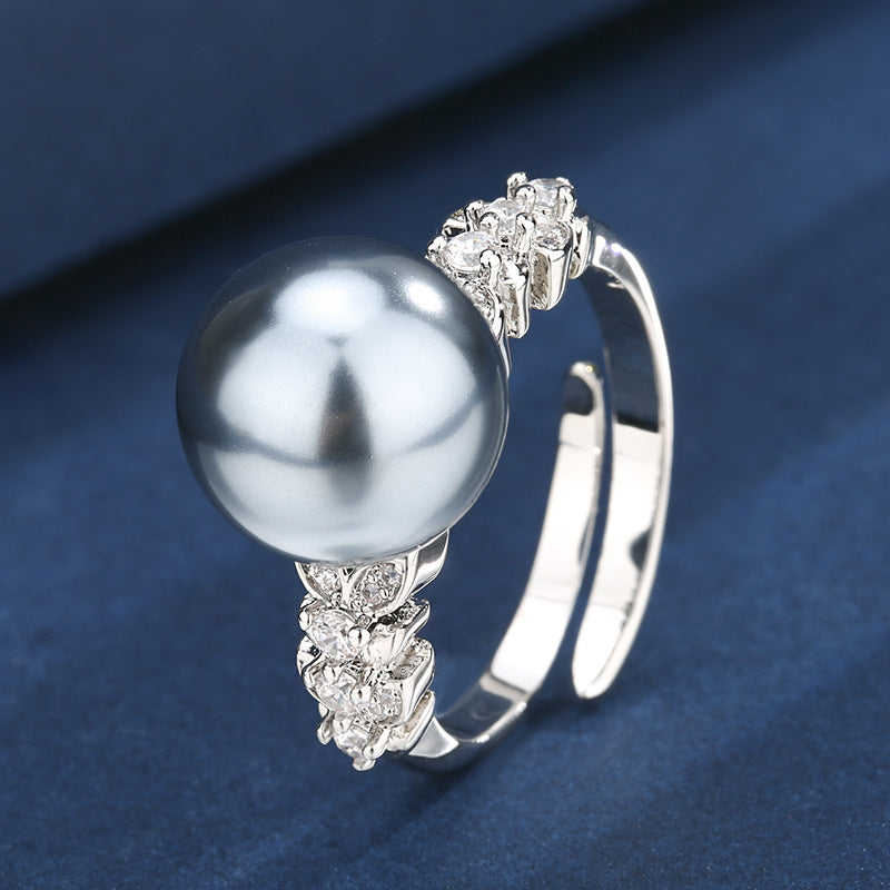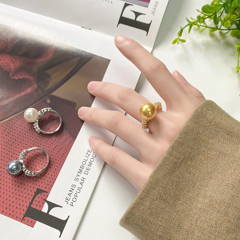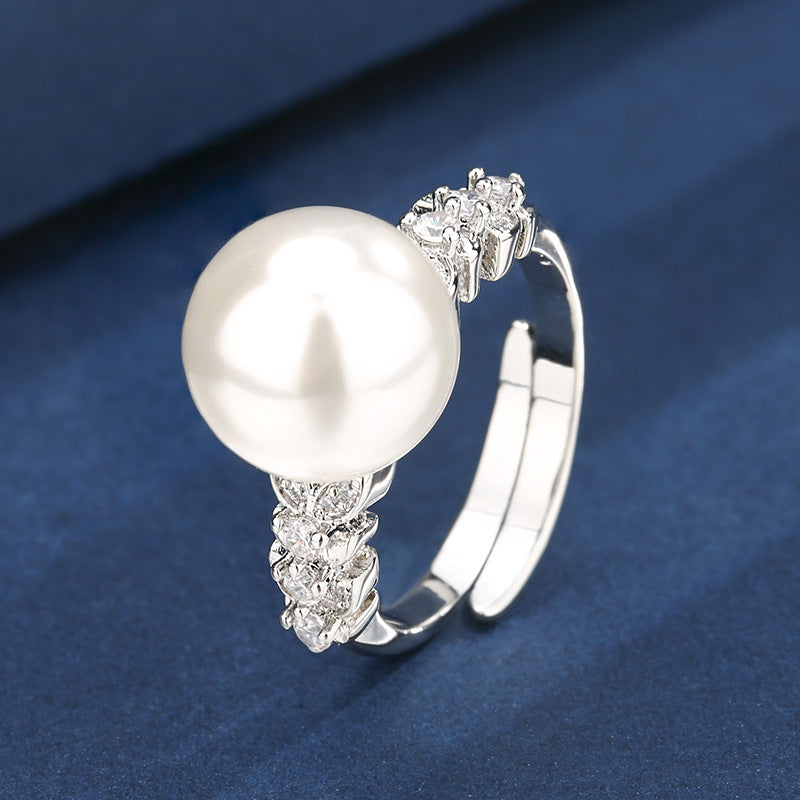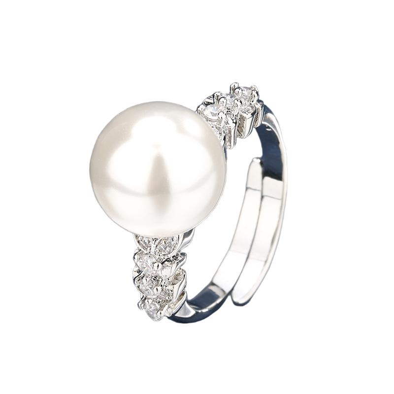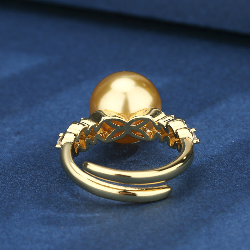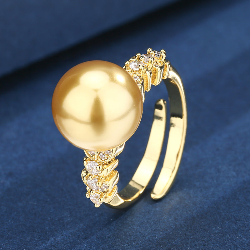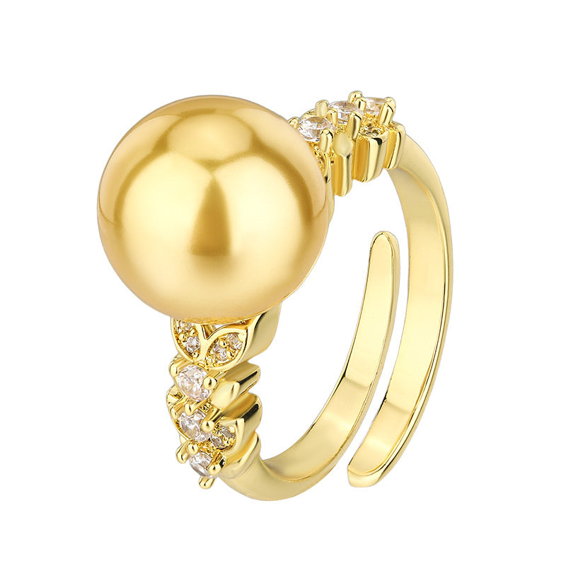 Urqanyu copper-based gold-plated simulated pearl simple style fashion cubic zirconia ring