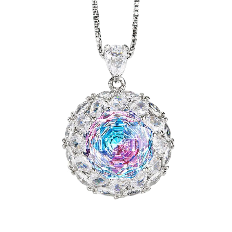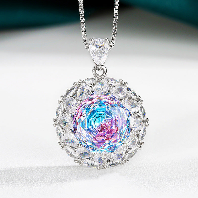 Urqanyu copper base gold-plated millennium cut gradient temperament cubic zirconia pendant necklace