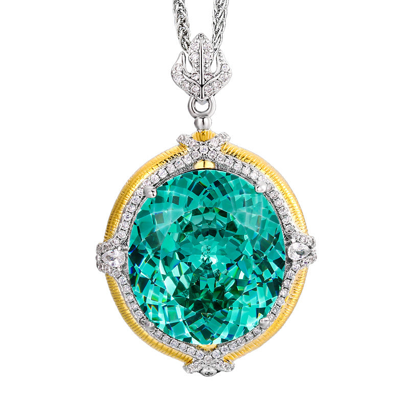 Urqanyu copper-based gold-plated simulated Para green temperament retro square zirconia pendant necklace