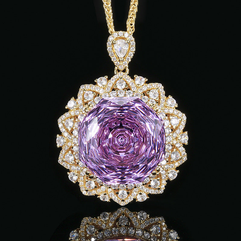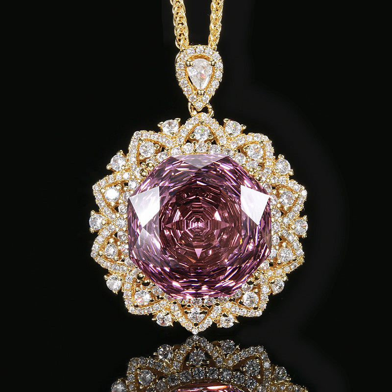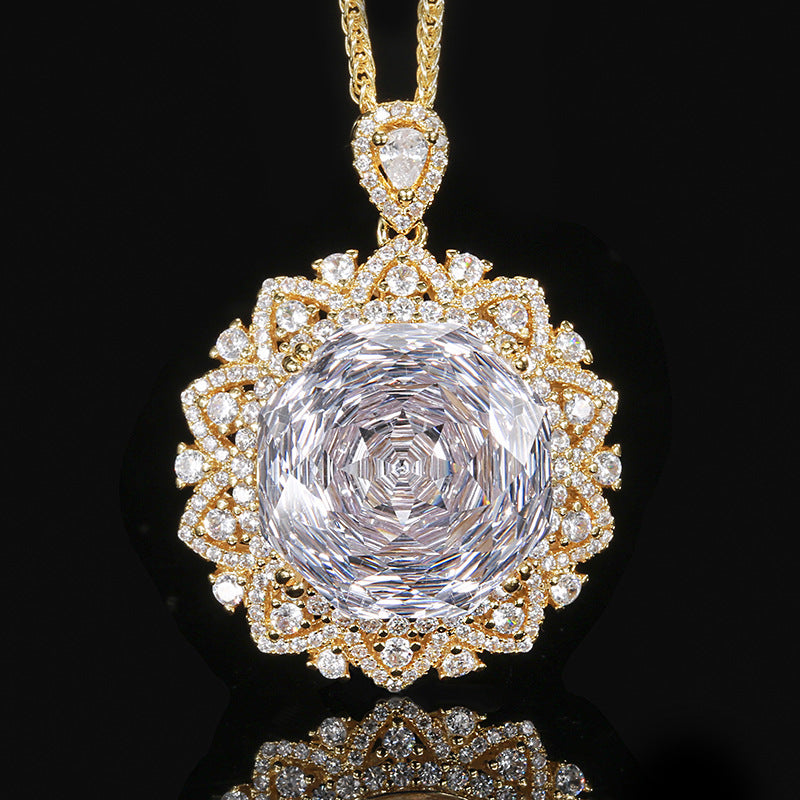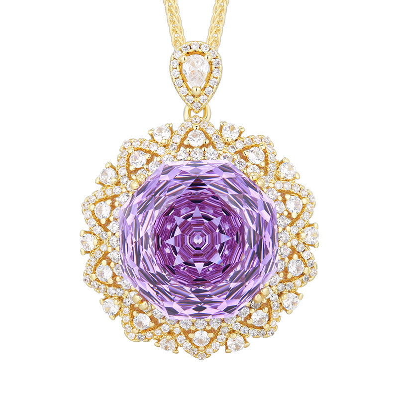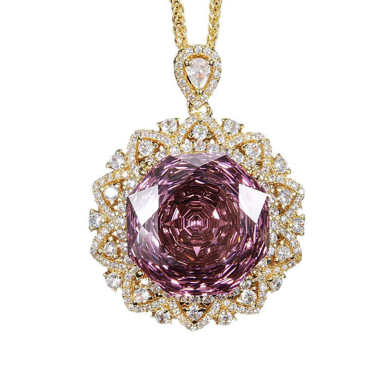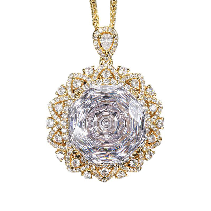 Urqanyu Copper-base gold-plated rose-cut elegant retro cubic zirconia pendant necklace