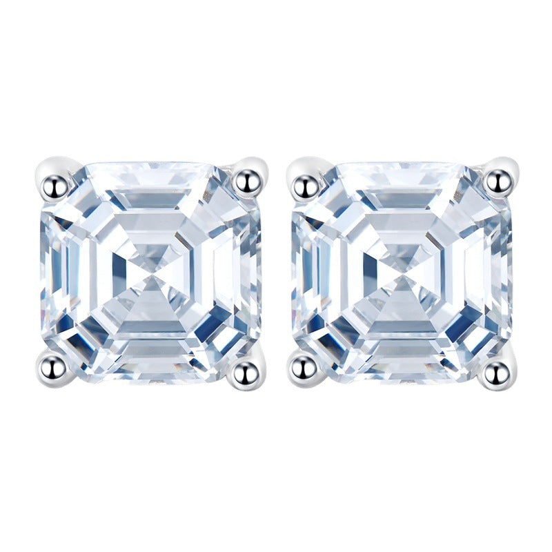 Urqanyu S925 silver simple 7mm pagoda flat simulated diamond four-claw square zirconia earrings