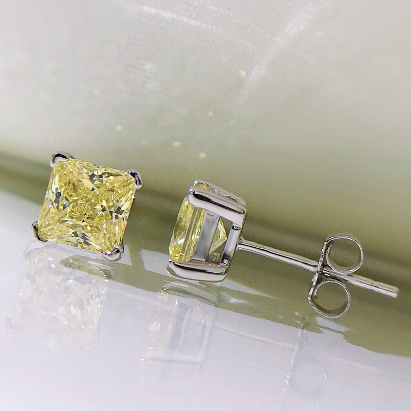 Urqanyu S925 silver bright yellow simple princess square 6m ice flower cut cubic zirconia earrings