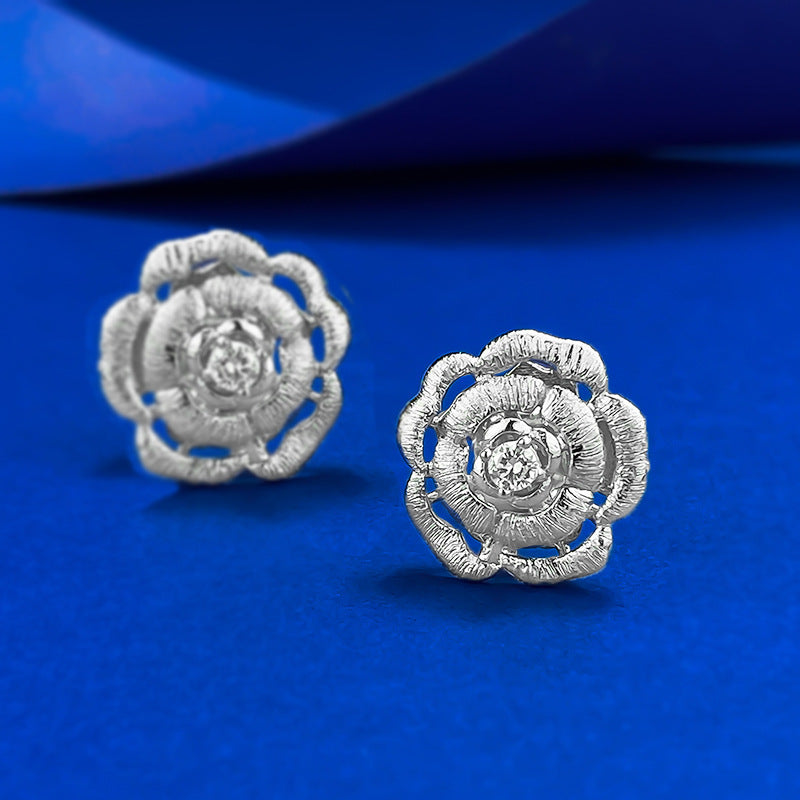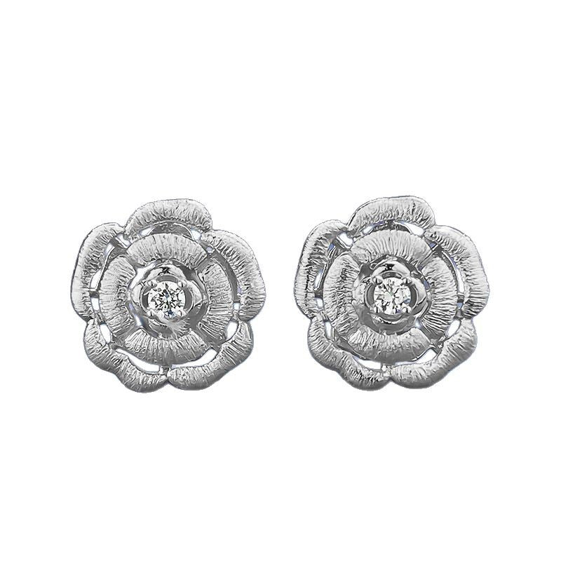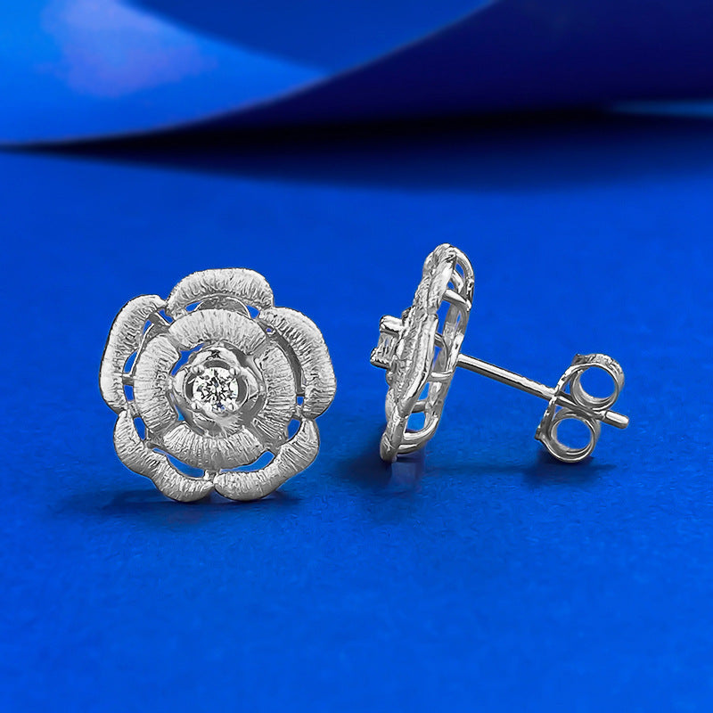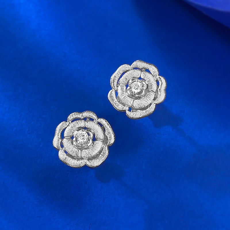 Urqanyu s925 silver camellia brushed fashionable all-match cubic zirconia earrings