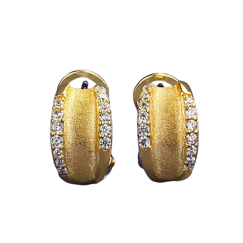 Urqanyu S925 silver plated real gold brushed frosted craft fashionable all-match cubic zirconia earrings