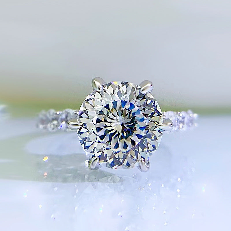 Urqanyu S925 silver 5 carat firework cut aurora six-claw cubic zirconia ring