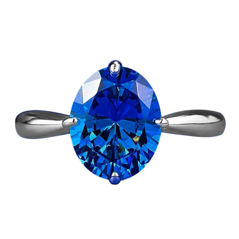 Urqanyu S925 silver simulated royal blue oval cubic zirconia ring