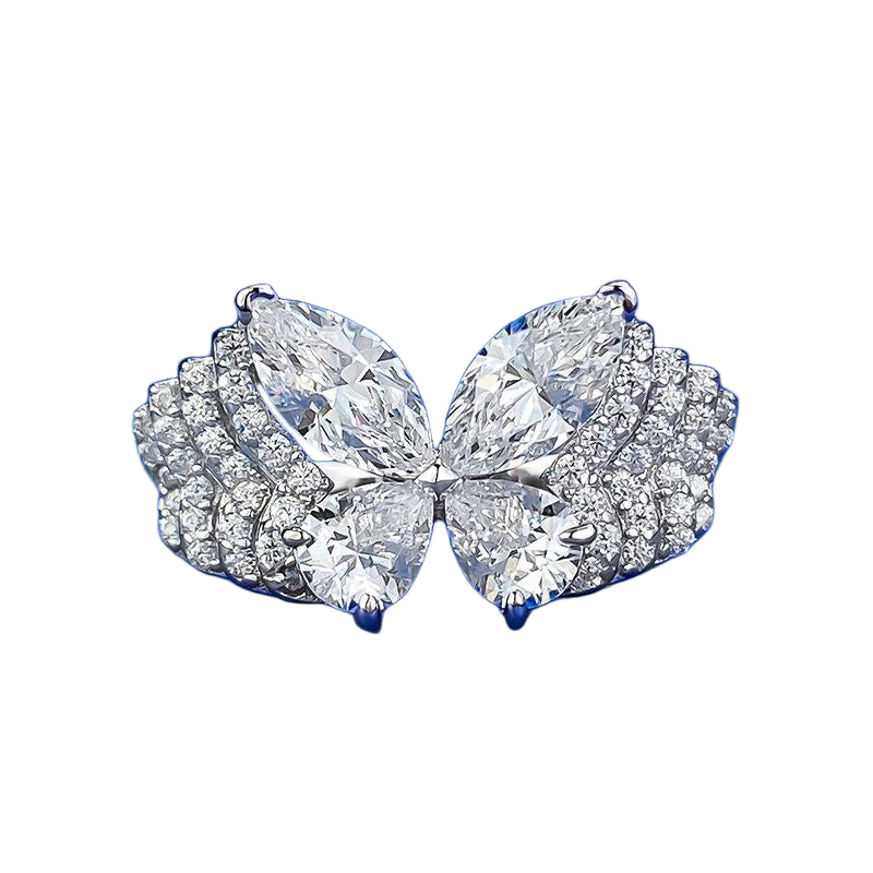 Urqanyu S925 silver phantom butterfly layered butterfly cubic zirconia diamond ring