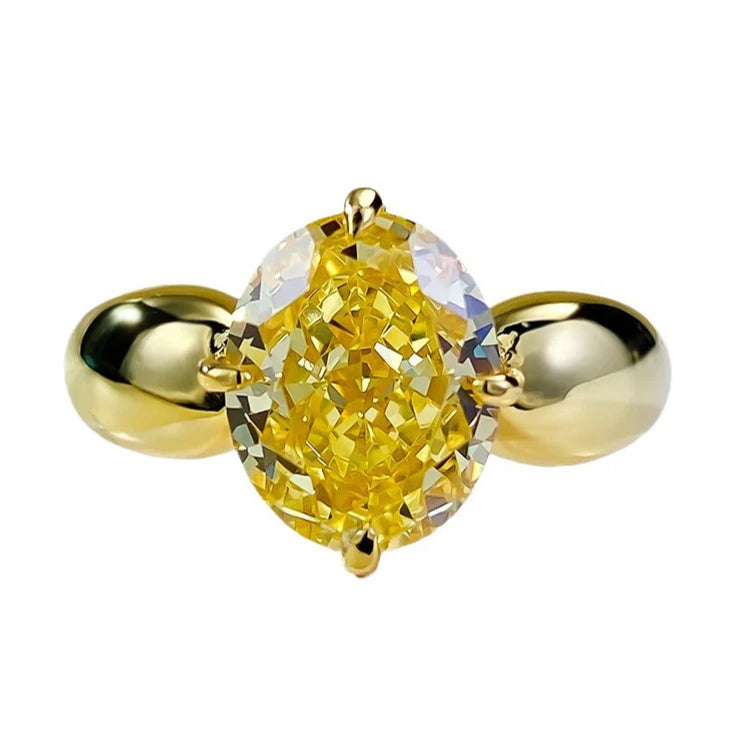 Urqanyu S925 silver ice flower cut yellow diamond cubic zirconia ring 8*10
