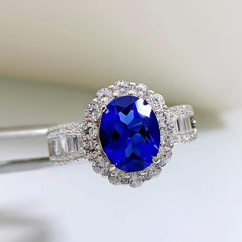 Urqanyu S925 silver luxury surround vintage oval cubic zirconia ring 7*9