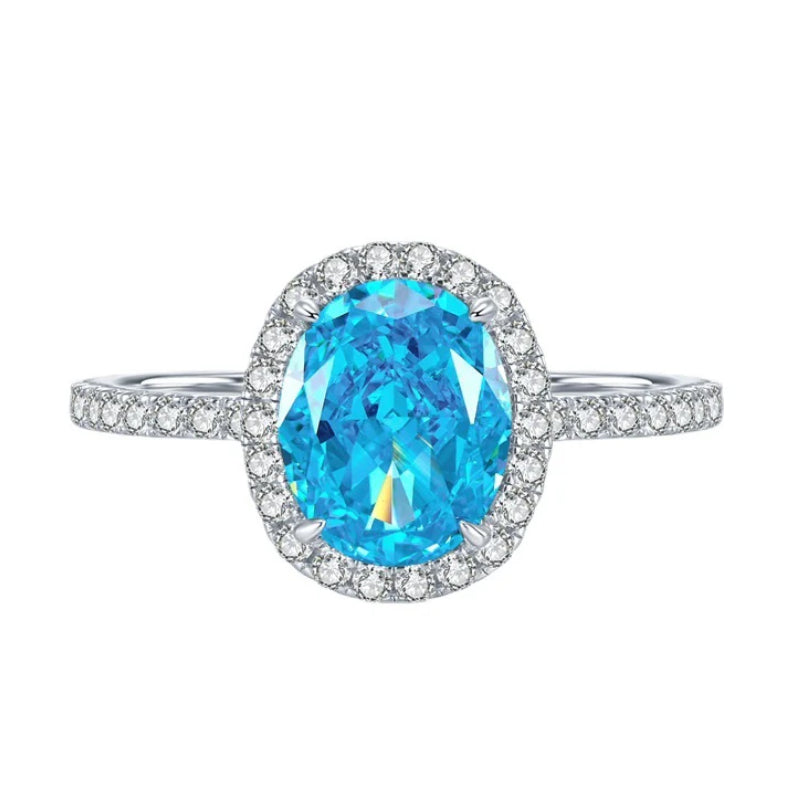 Urqanyu S925 silver one carat oval sea blue cubic zirconia radiant ring 6*8