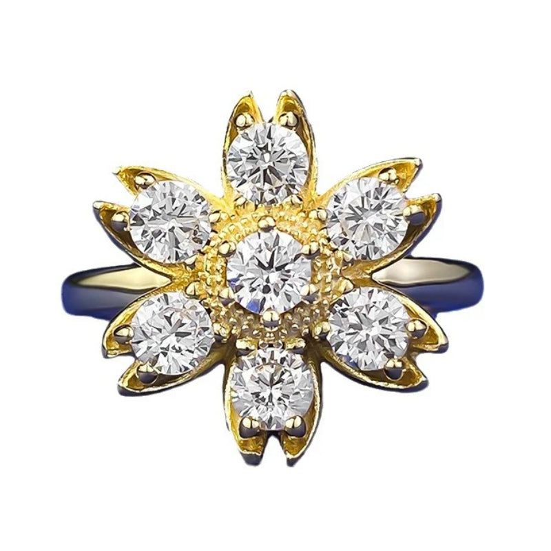 Urqanyu S925 silver creative daisy sunflower fashion diamond-encrusted cubic zirconia ring