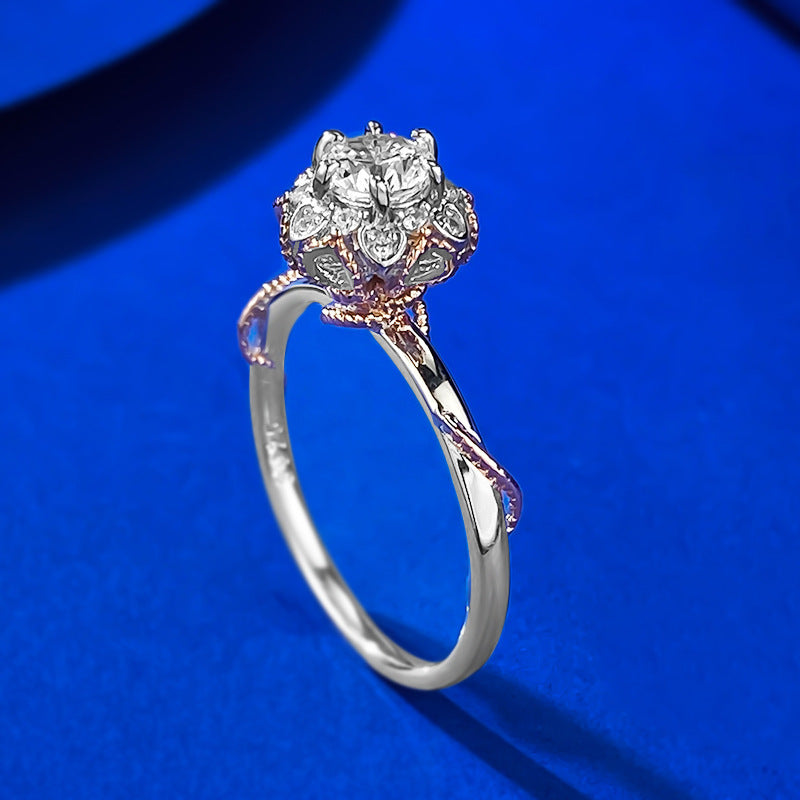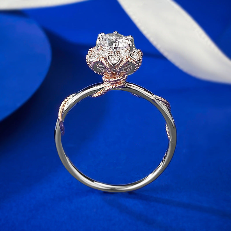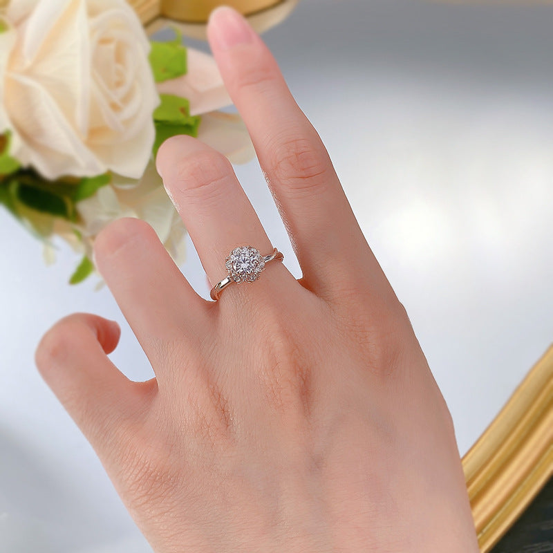 Urqanyu 925 silver 50-point simulated diamond bouquet cubic zirconia ring