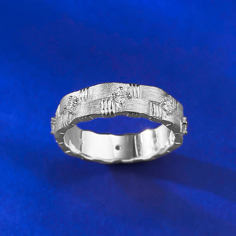 Urqanyu Bracchiati brushed cubic zirconia ring Italian craft S925 silver
