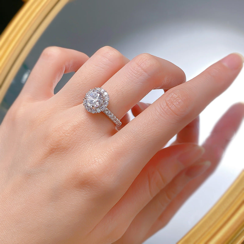 Urqanyu S925 silver simulated diamond round white diamond cubic zirconia ring 8mm
