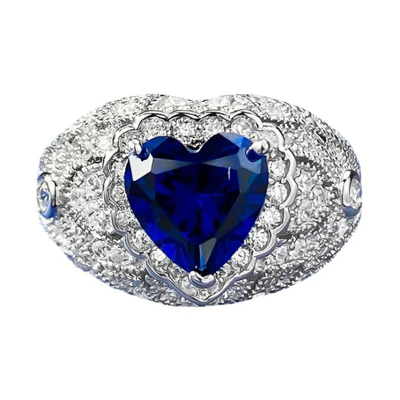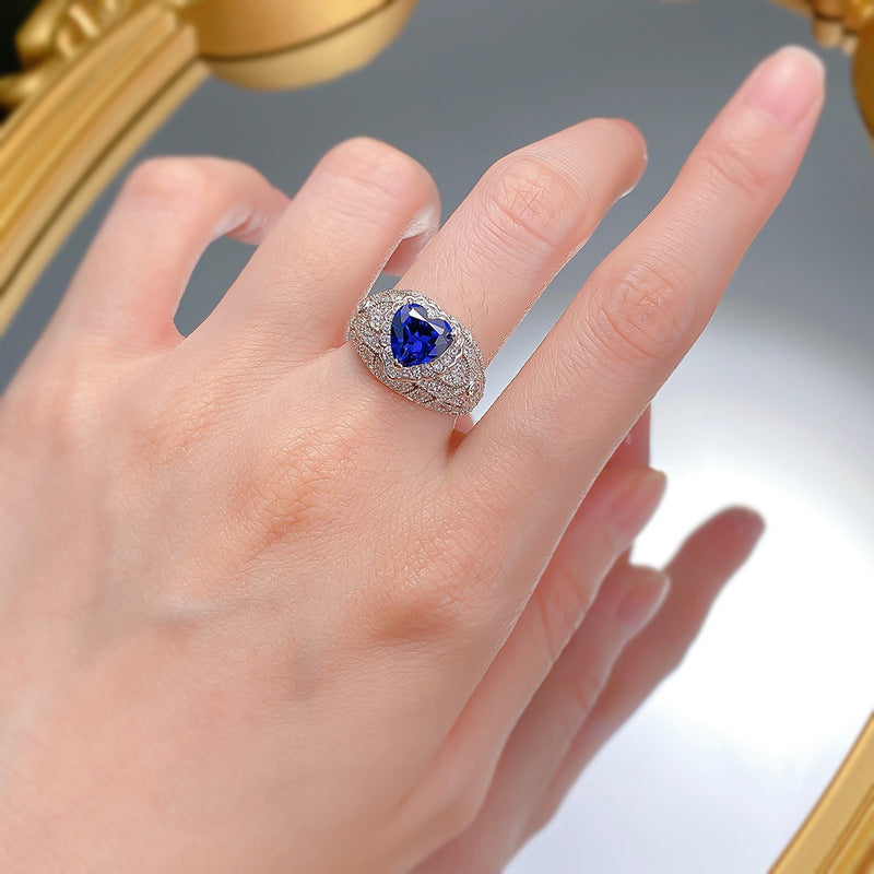 Urqanyu S925 sterling silver heart-shaped simulated sapphire cubic zirconia ring 8*8
