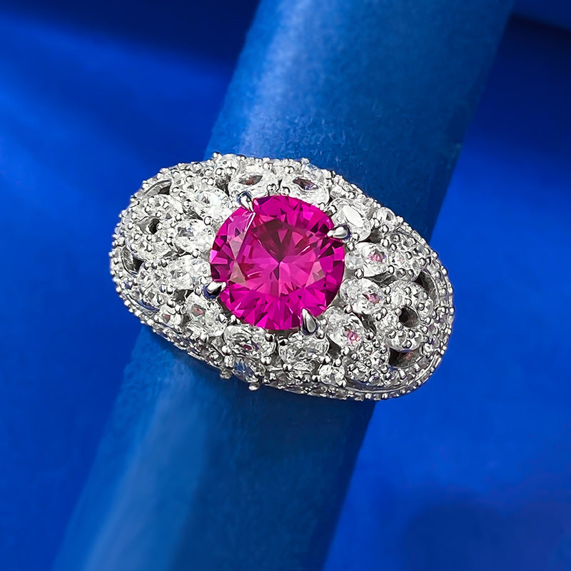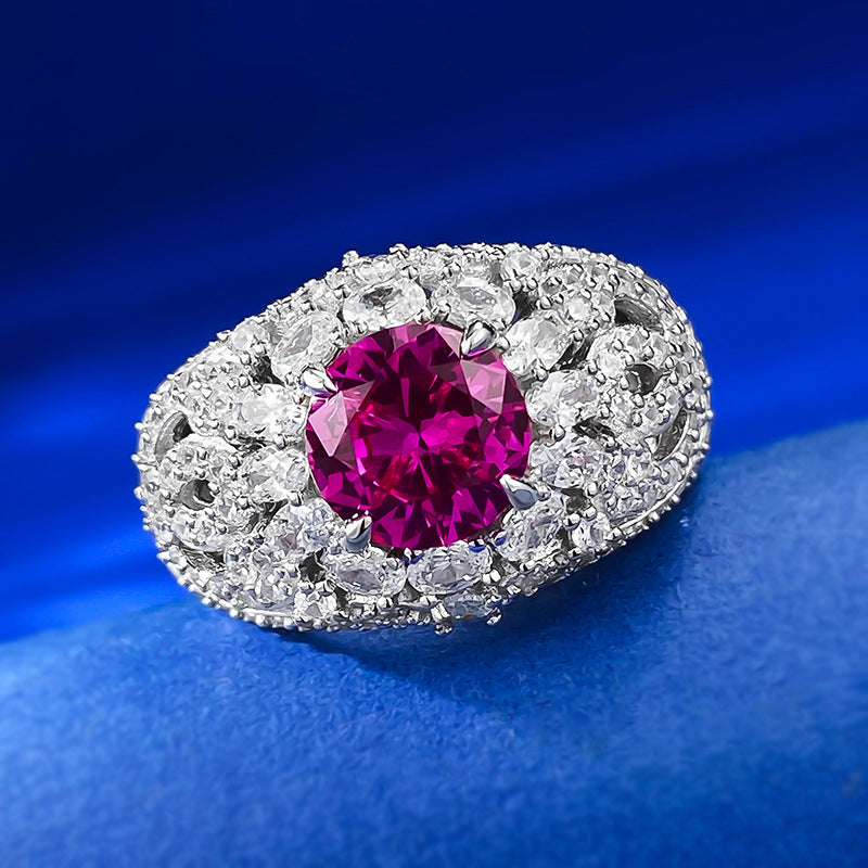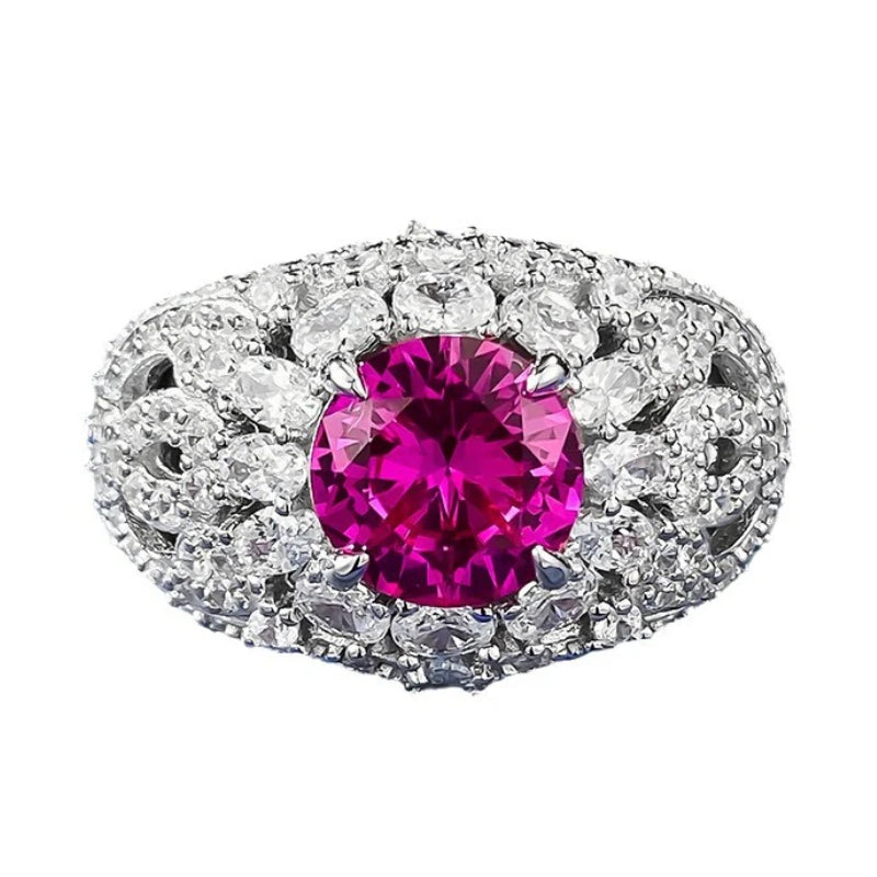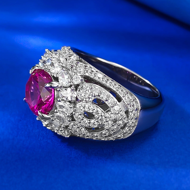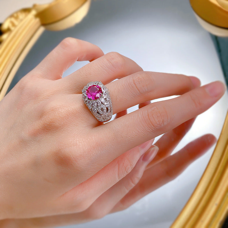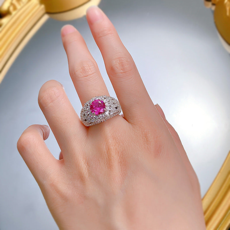 Urqanyu S925 silver fashion pink steel round diamond ring cubic zirconia ring 8.0mm