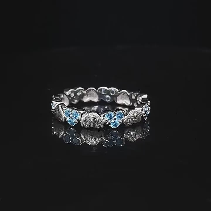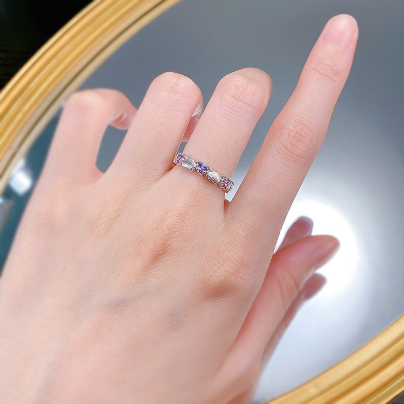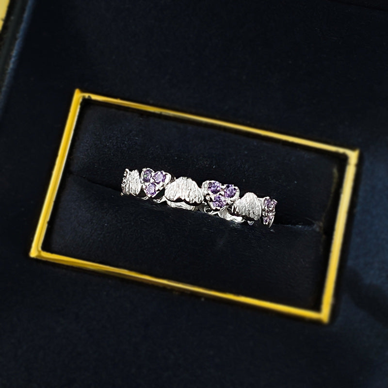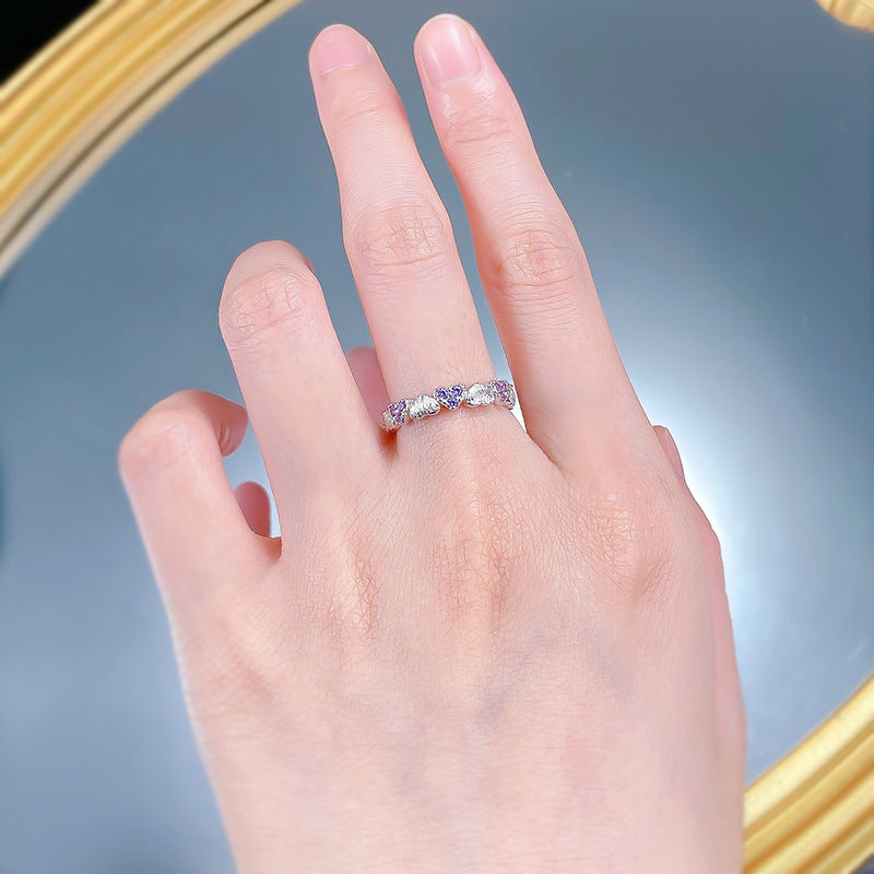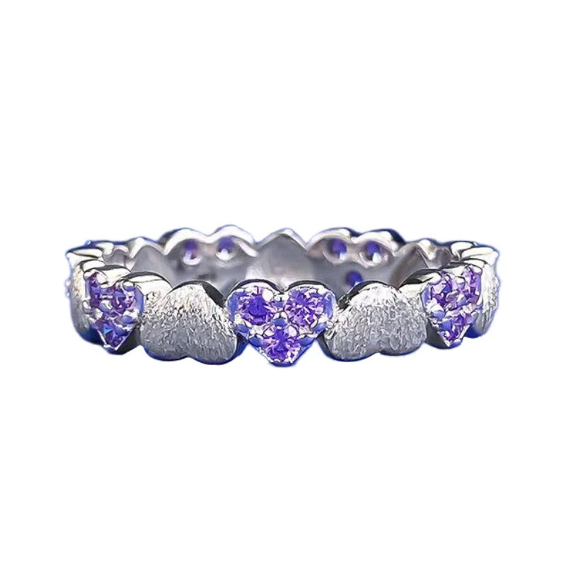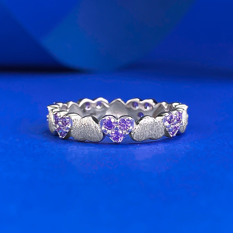 Urqanyu S925 silver retro brushed love purple full circle heart cubic zirconia ring