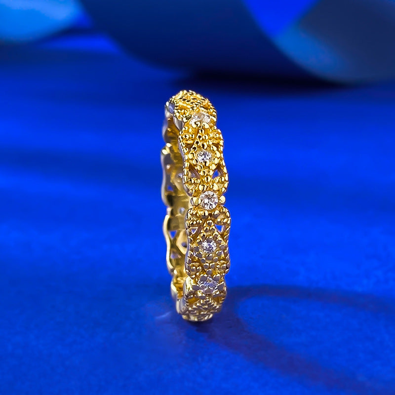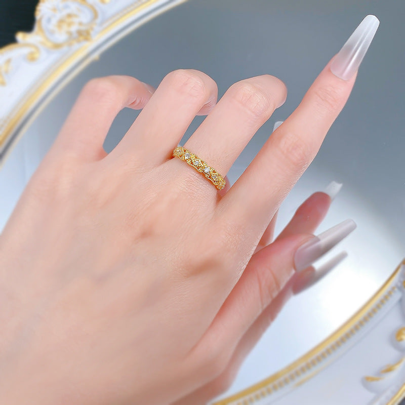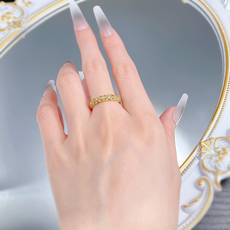 Urqanyu S925 silver retro palace lace hollow inlaid cubic zirconia diamond ring ring fashion