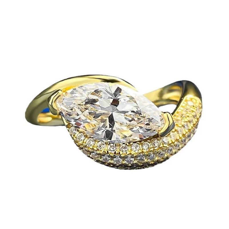 Urqanyu 925 silver horse eye cubic zirconia diamond ring 6*12