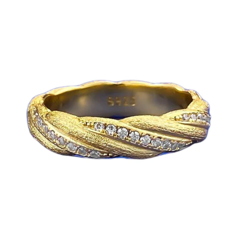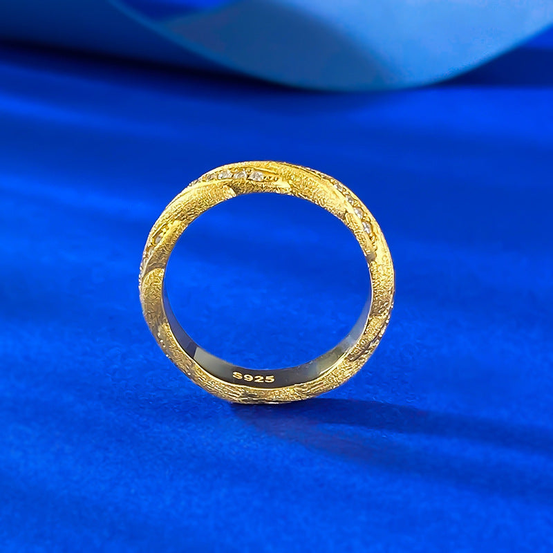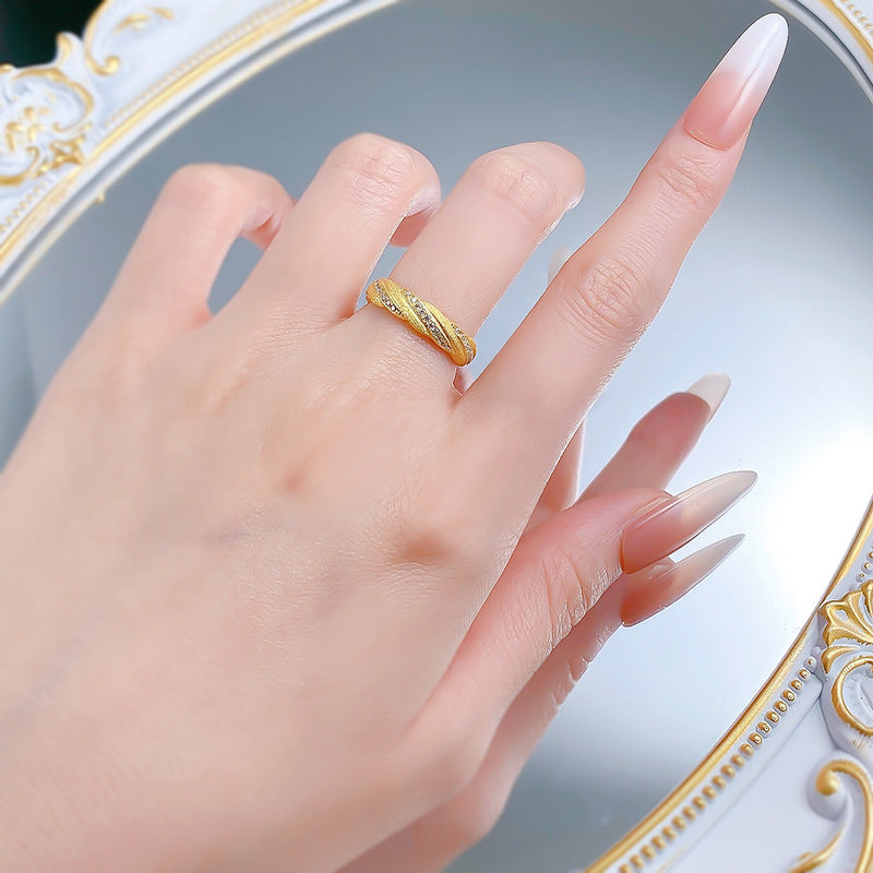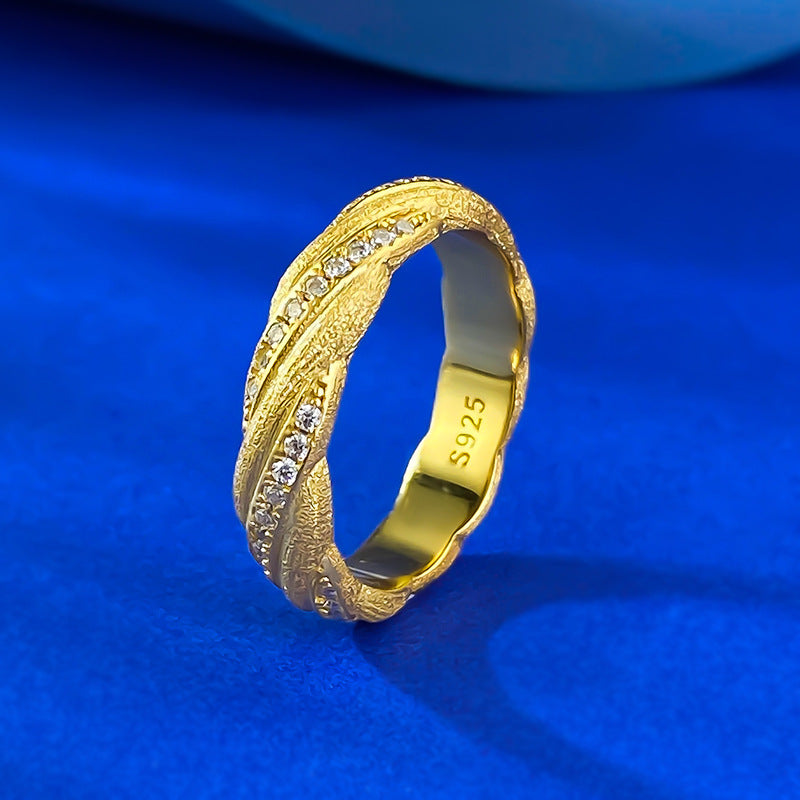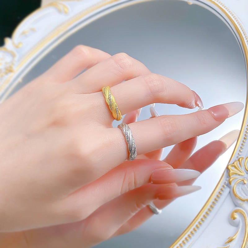Urqanyu S925 silver Italian brushed gold winding ring layered woven pattern temperament cubic zirconia ring