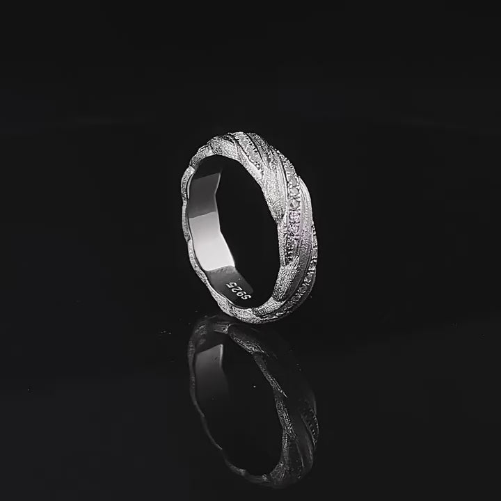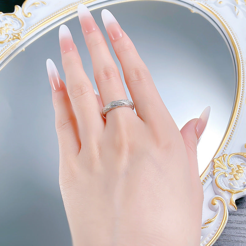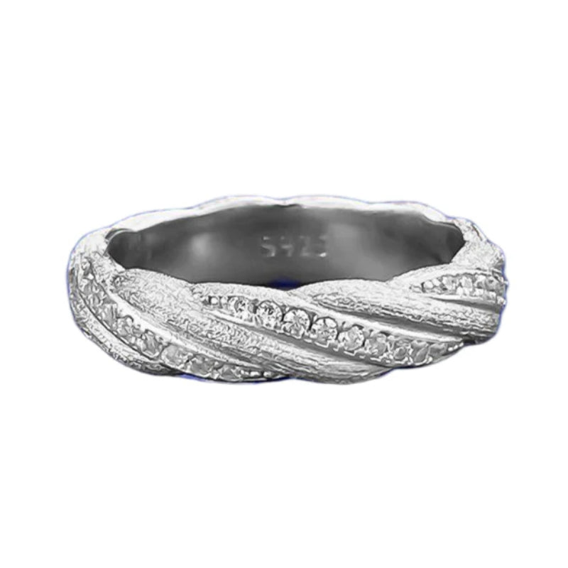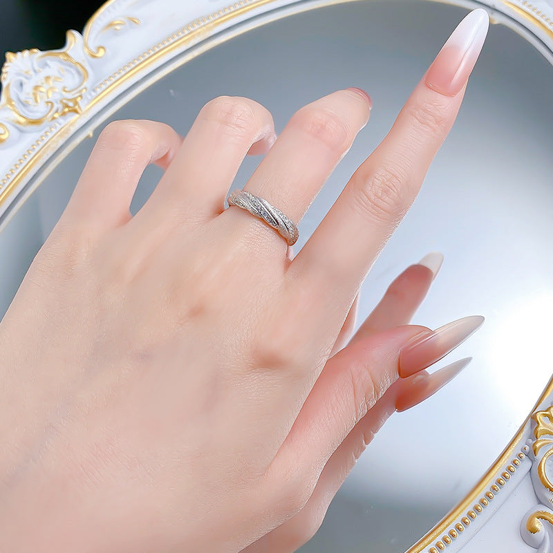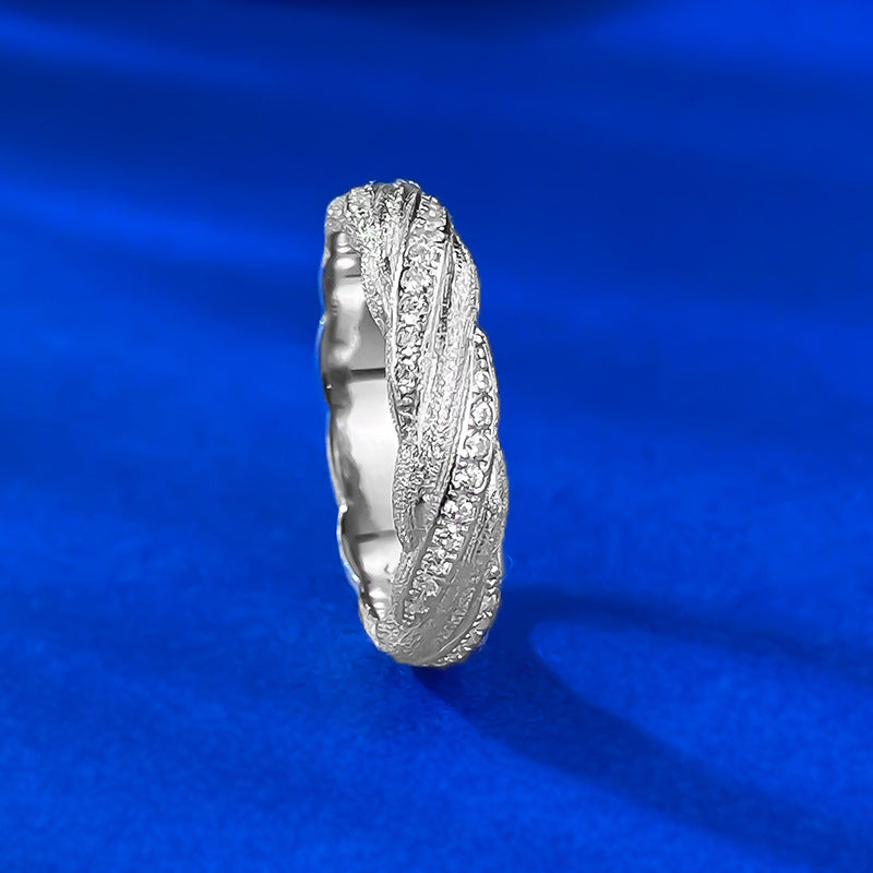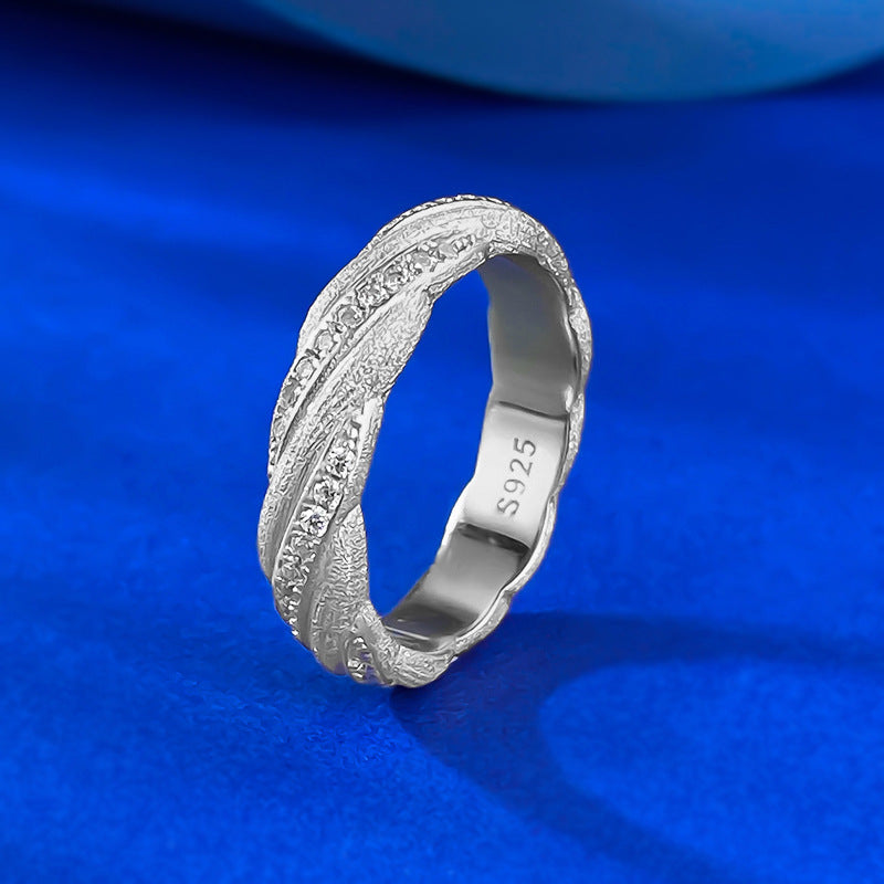 Urqanyu S925 silver Italian brushed gold winding ring layered woven pattern temperament cubic zirconia ring