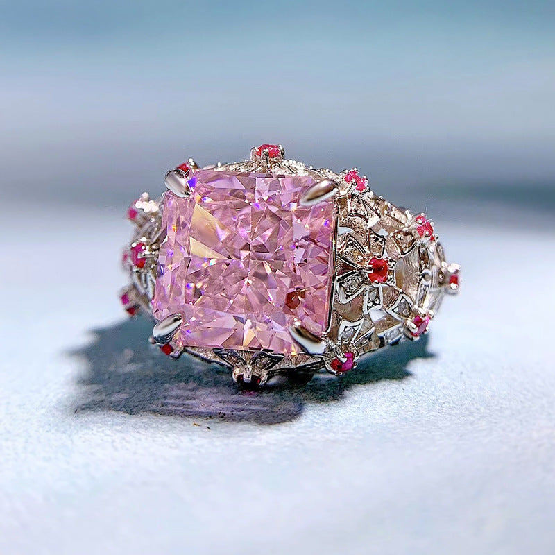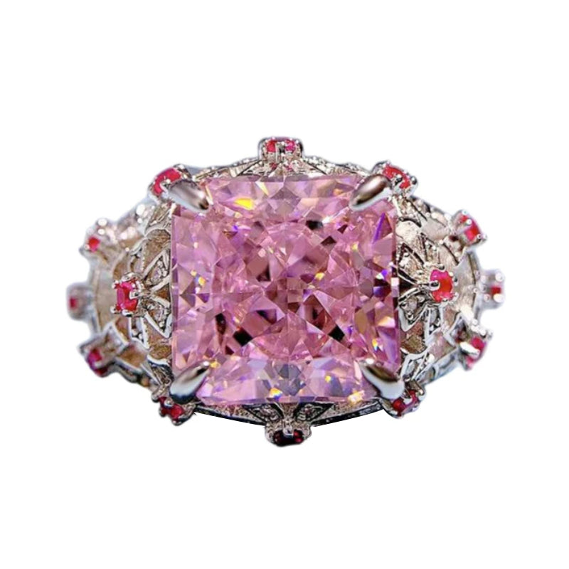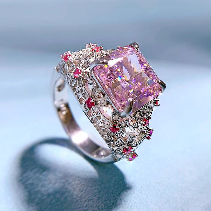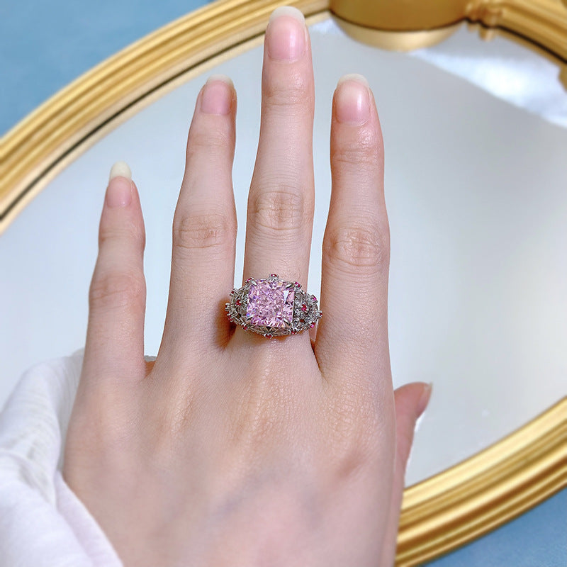 Urqanyu S925 silver oval pink cubic zirconia diamond ring 10*10