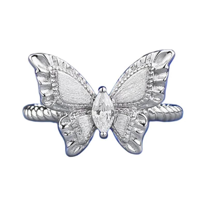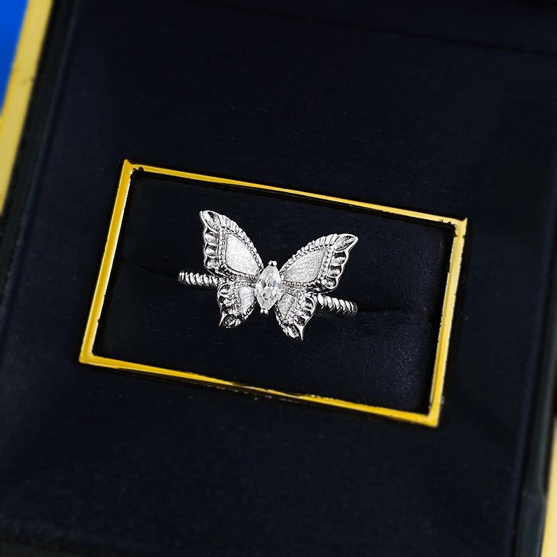 Urqanyu S925 sterling silver plant series medieval brushed fantasy butterfly cubic zirconia ring