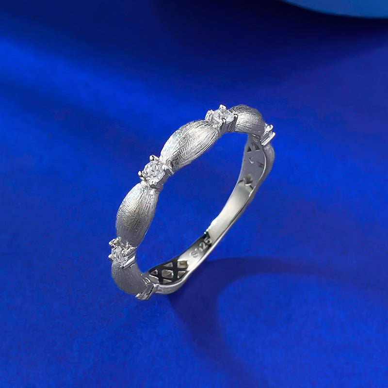 Urqanyu S925 silver Bubujia brushed Italian craft cubic zirconia gift ribbon ring