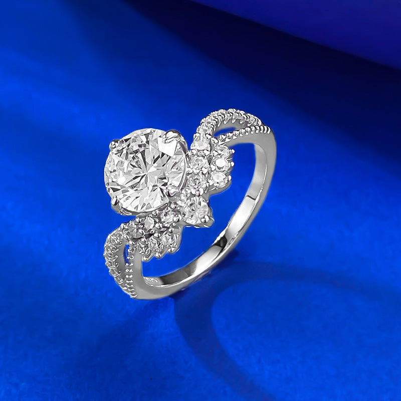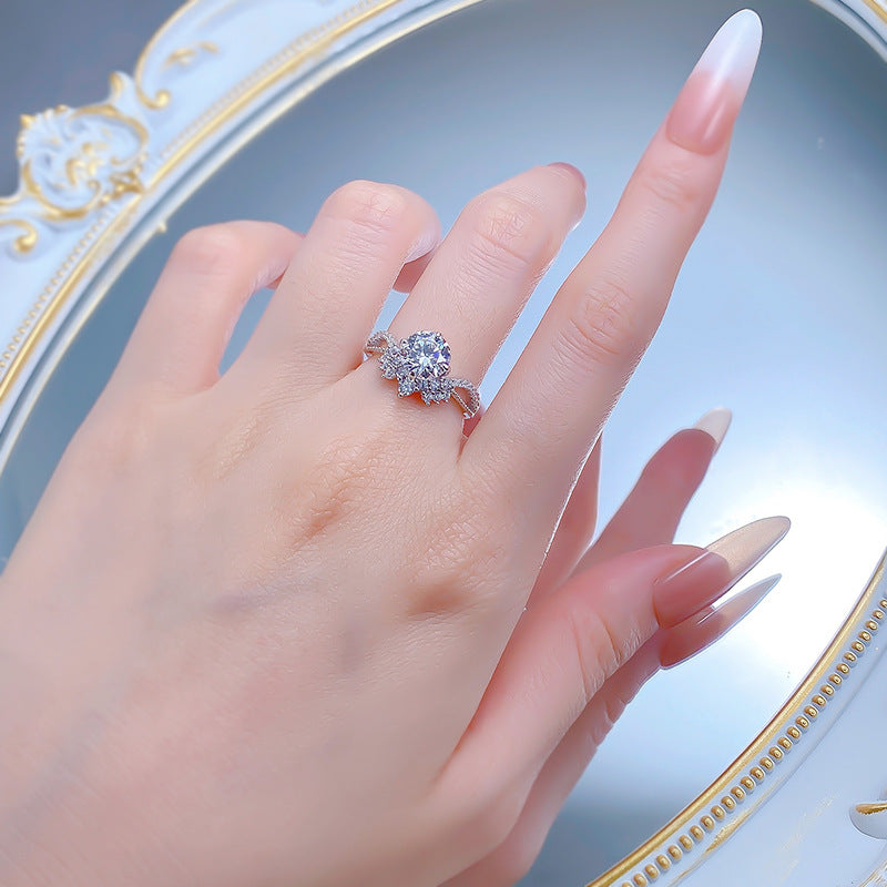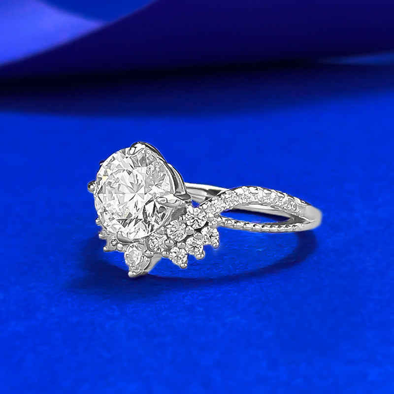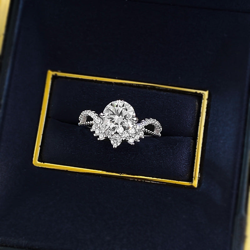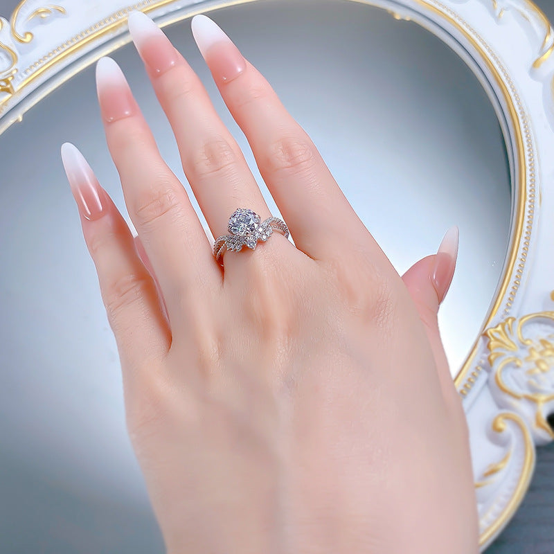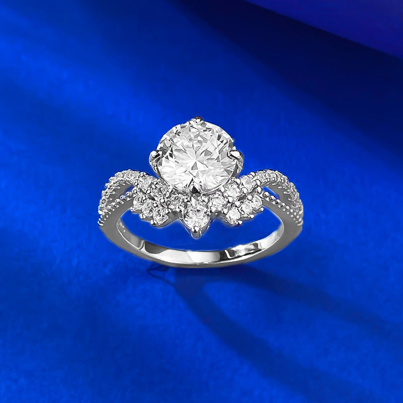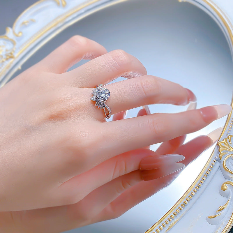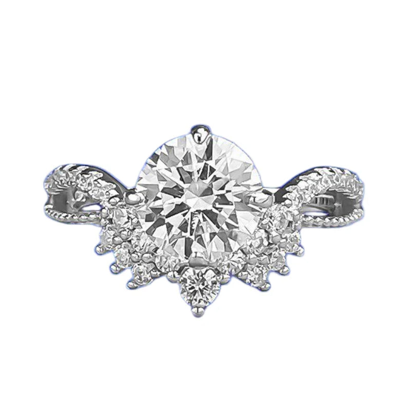 Urqanyu 925 silver crown V-shaped cubic zirconia round ring 7.5mm