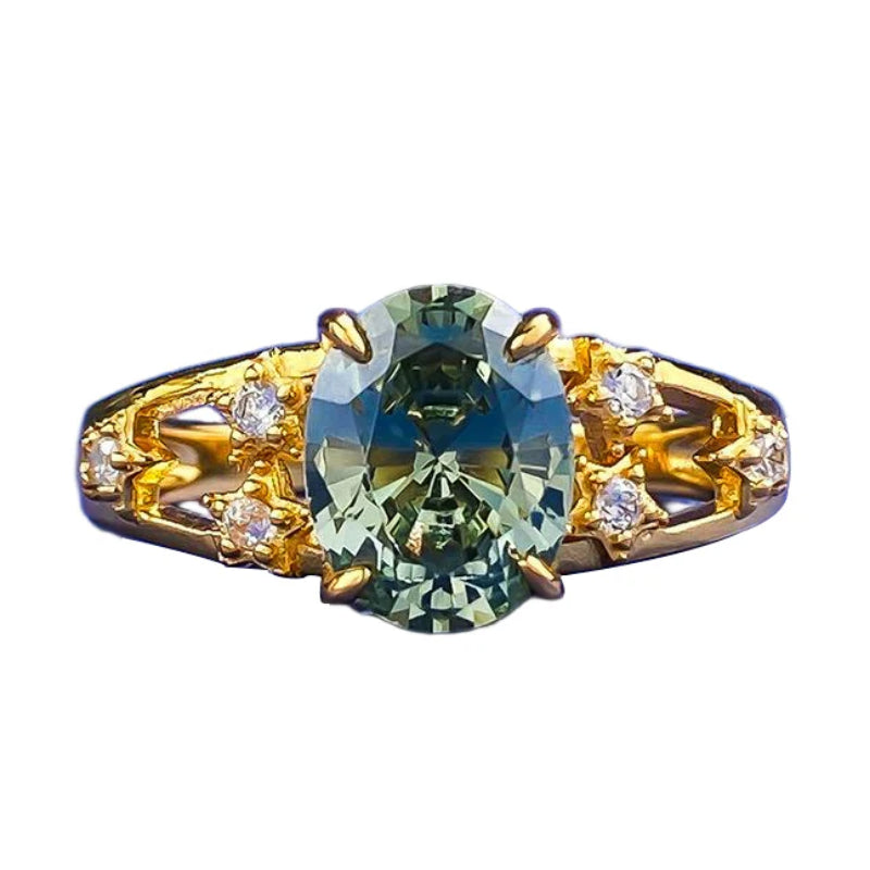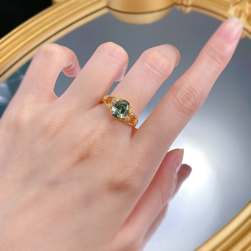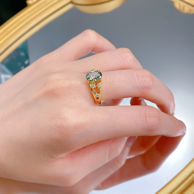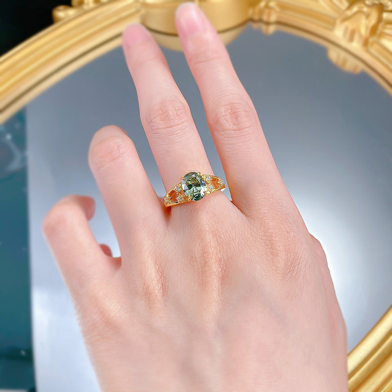Urqanyu S925 silver oxygen mint green oval tourmaline green cubic zirconia ring 6*9