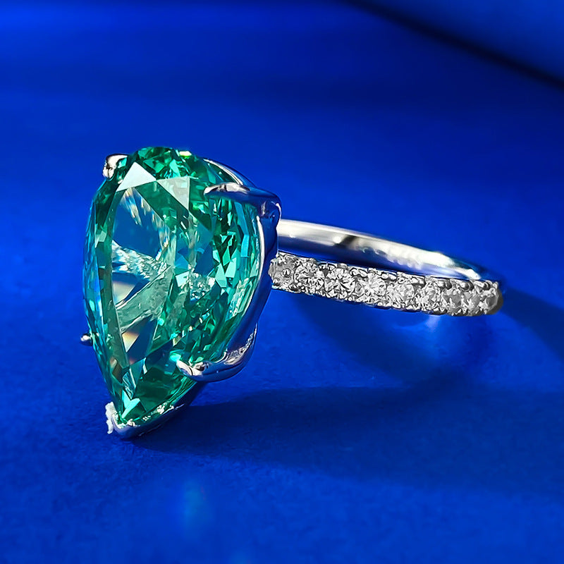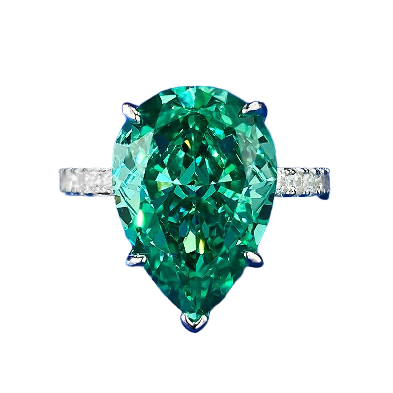 Urqanyu 925 silver cubic zirconia diamond water drop emerald green wedding ring 10*14
