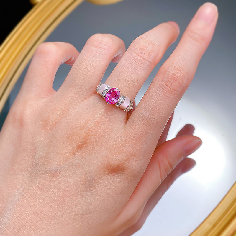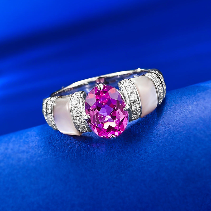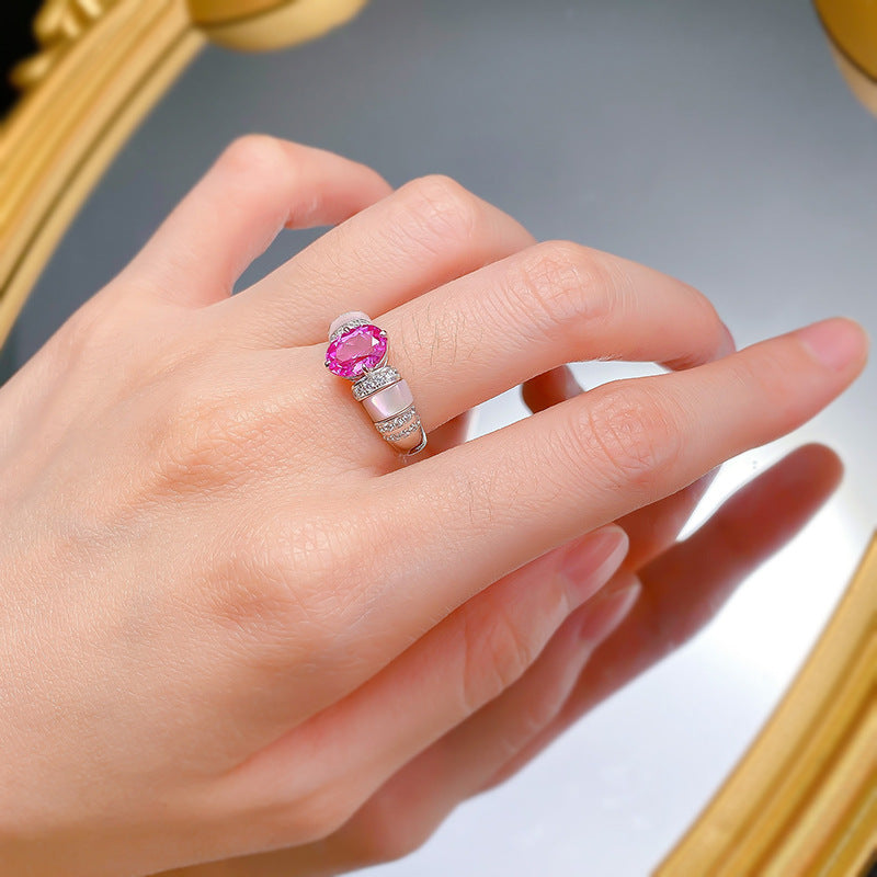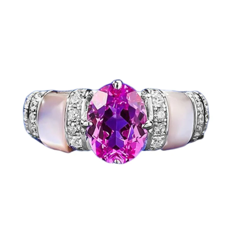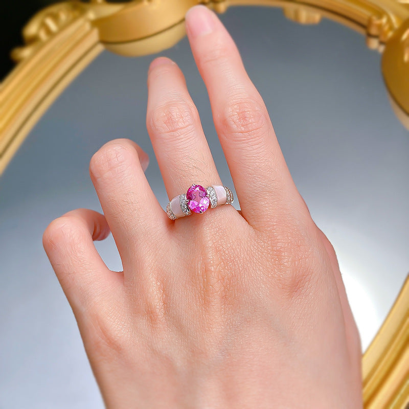 Urqanyu 925 silver natural pink shell rupee red cubic zirconia diamond ring silver